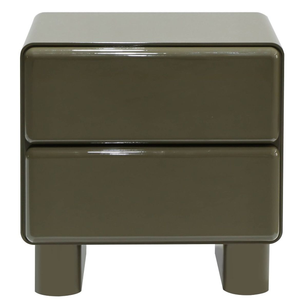 Lukahome.pl » Stoły i stoliki kawowe / Stoliki nocne / Szafka nocna z szufladami Lagos, zielona/szara, zaokrąglona, błyszcząca