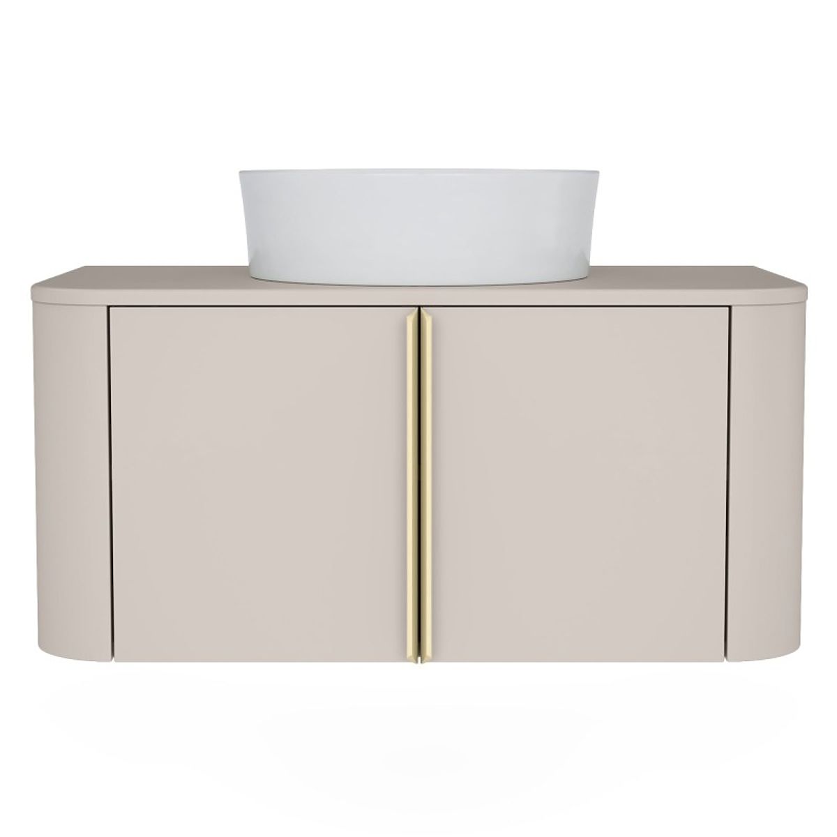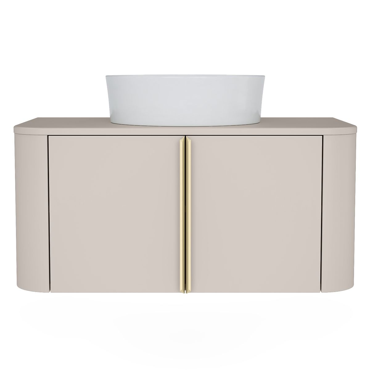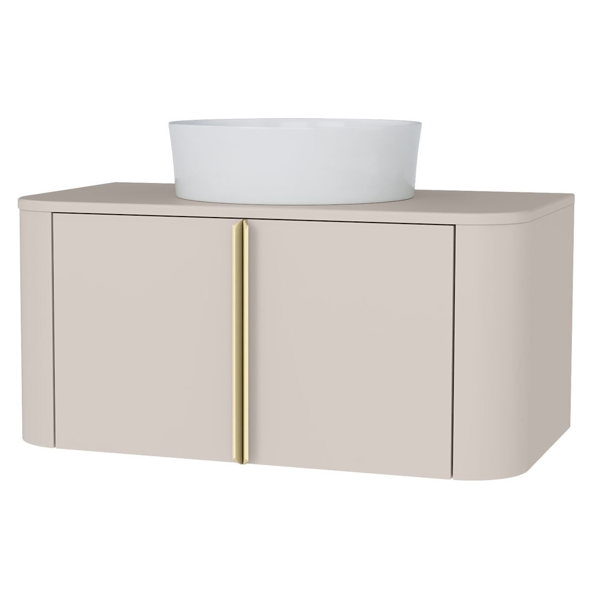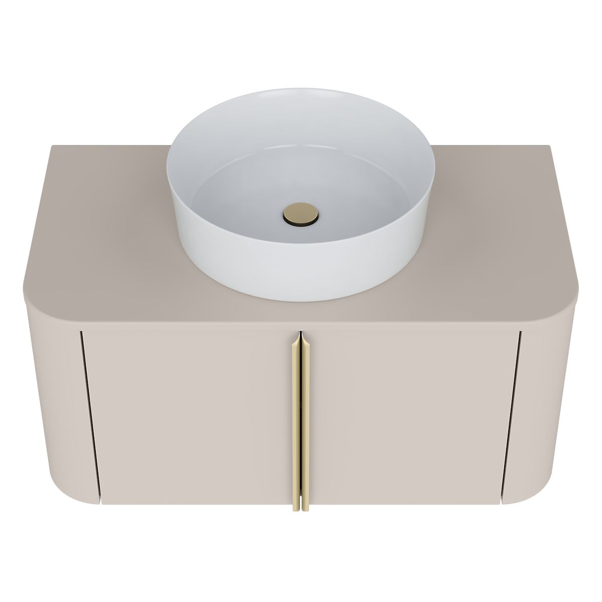 Lukahome.pl » Łazienka i toaleta / Szafki łazienkowe / Szafka pod umywalkę nablatową Bassa 80 cm, kaszmirowa, złote uchwyty, zaokrąglona