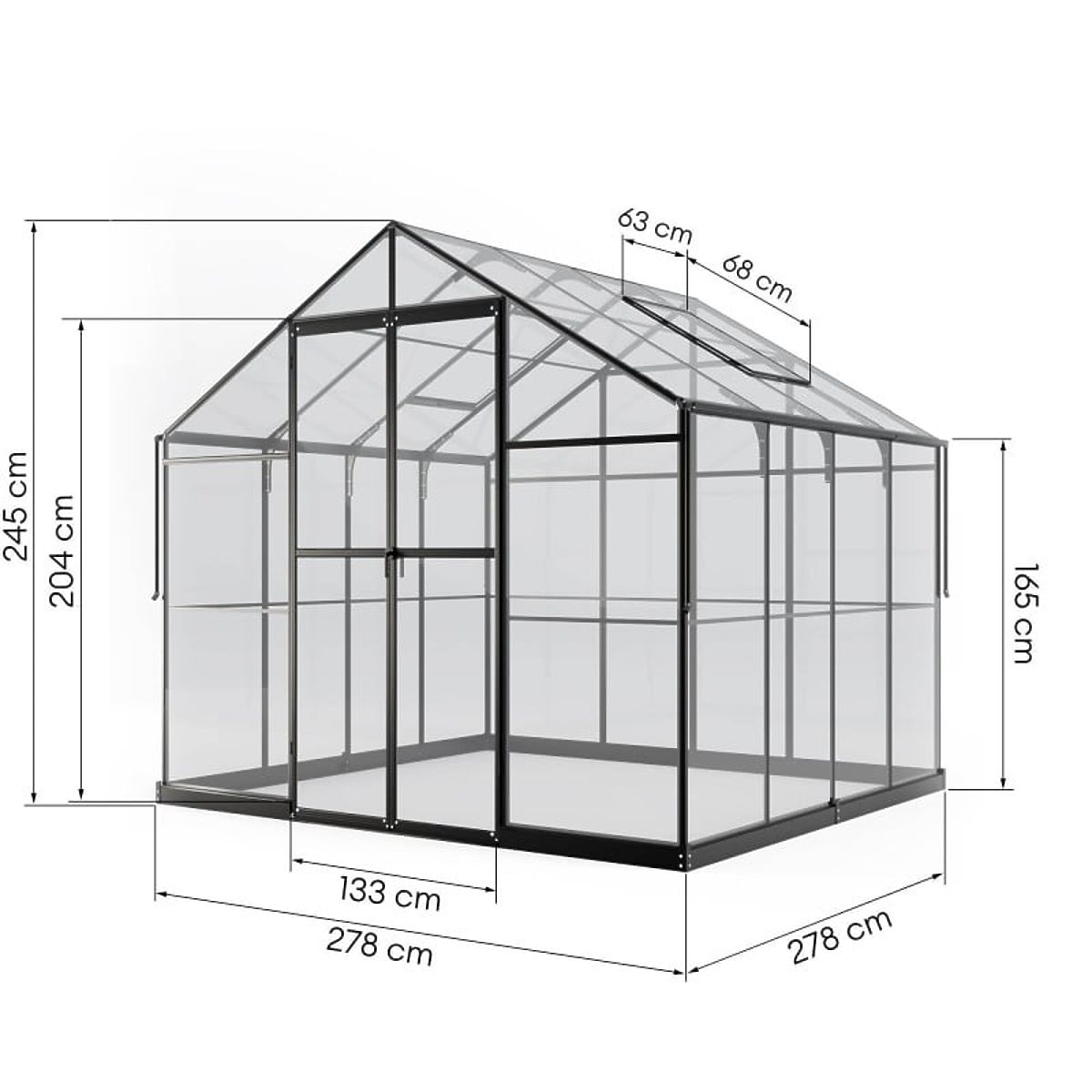 Szklarnia ogrodowa ProGlass Classic Compact 7,7 m² z podstawą, szkło hartowane 4 mm, aluminium