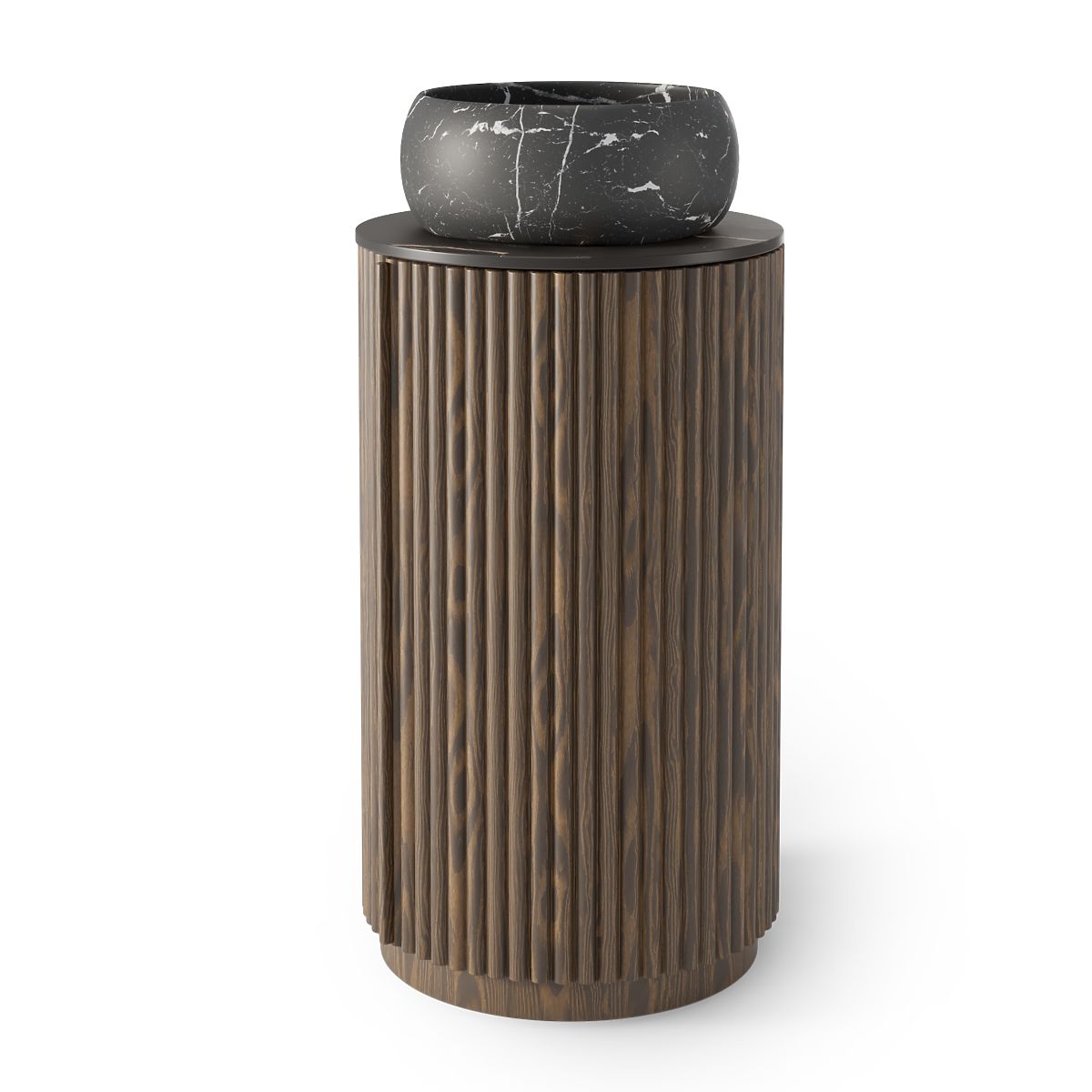 Lukahome.pl » Łazienka i toaleta / Zestawy łazienkowe / Zestaw szafki z blatem i umywalką La promessa 40 cm, żłobiona, zaokrąglona, ciemny orzech/czarny