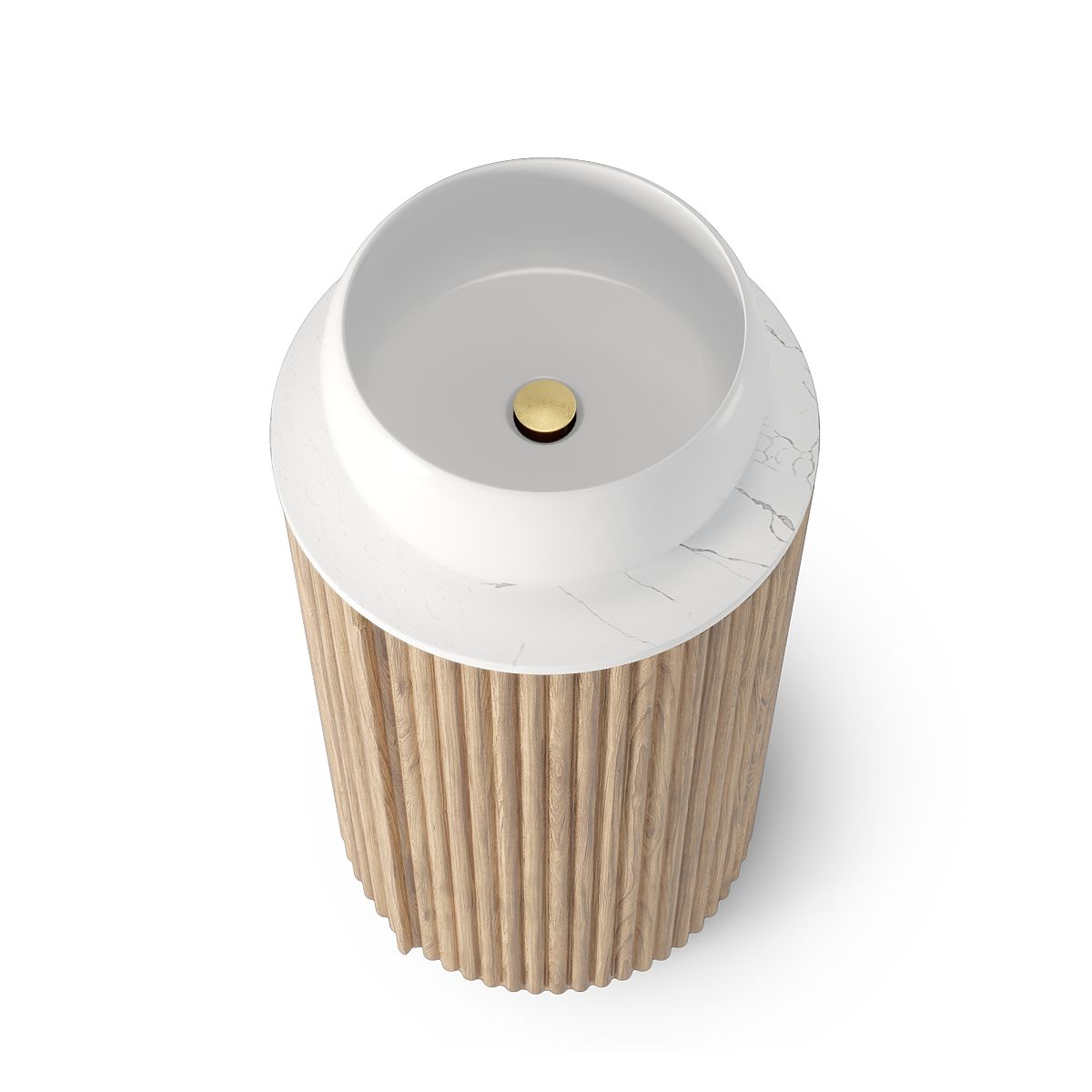 Lukahome.pl » Łazienka i toaleta / Zestawy łazienkowe / Zestaw szafki z blatem i umywalką La promessa 40 cm, żłobkowany, zaokrąglony, dąb/biały