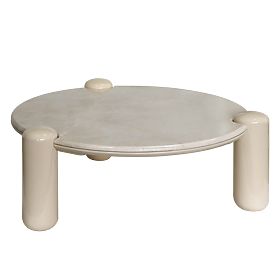 Okrągły marmurowy blat i jasnobeżowe nogi z MDF. .. więcej