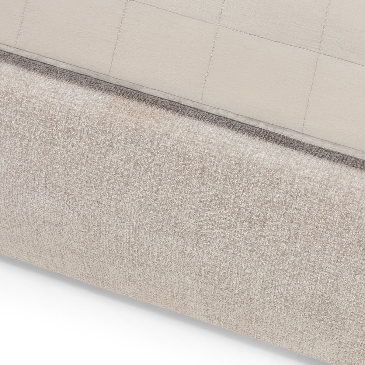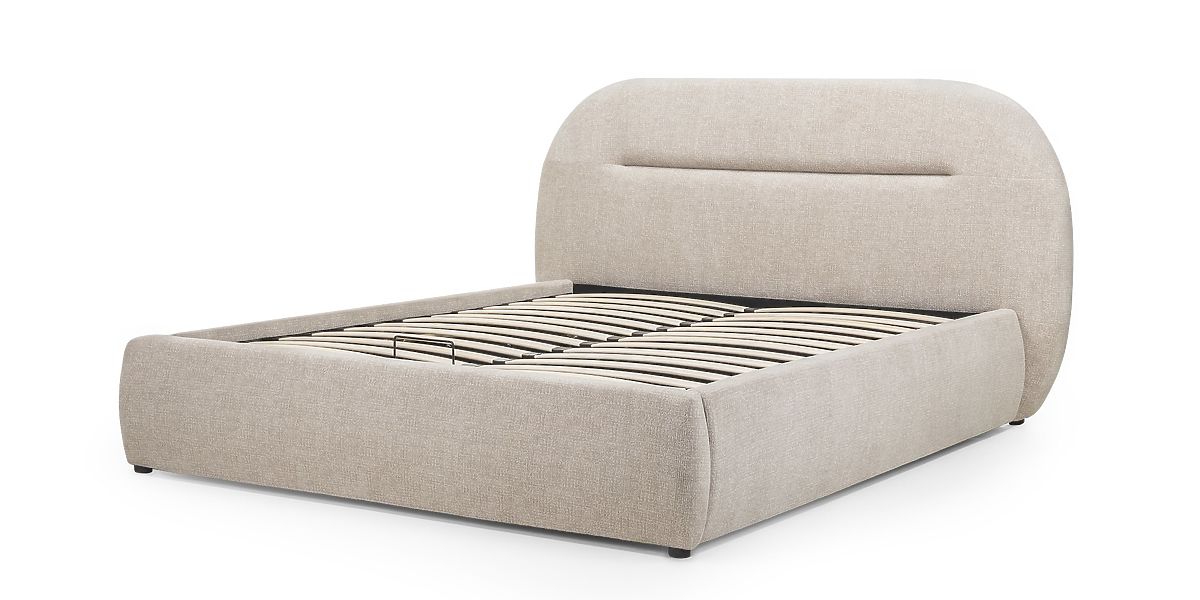 Tapicerowane łóżko Luno z jasnobeżową tapicerką i schowkiem na pościel. .. więcej