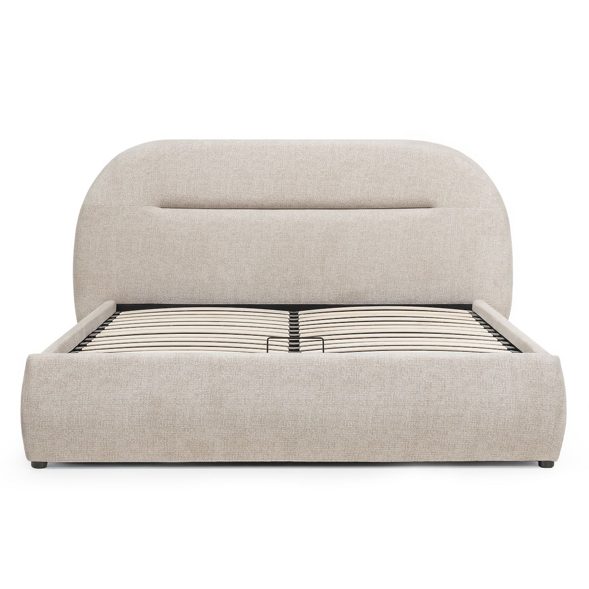 Lukahome.pl » Łóżka / Łóżka podwójne / Łóżka 140x200 / Tapicerowane łóżko Luno 140x200 cm, z stelażem i schowkiem, jasnobeżowe, zaokrąglone