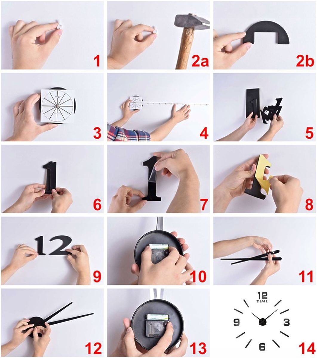 Nowoczesny zegar typu DIY - zrób to sam. Świetny dodatek do każdego salonu lub biura. Rozmiar zegara zależy od Ciebie! Zegary DIY mają najlepszy efekt, gdy średnica wynosi 80-100 cm, ale rozmiar może być większy lub mniejszy według uznania. Zegar można przykleić na ścianę lub inne gładkie powierzchnie.