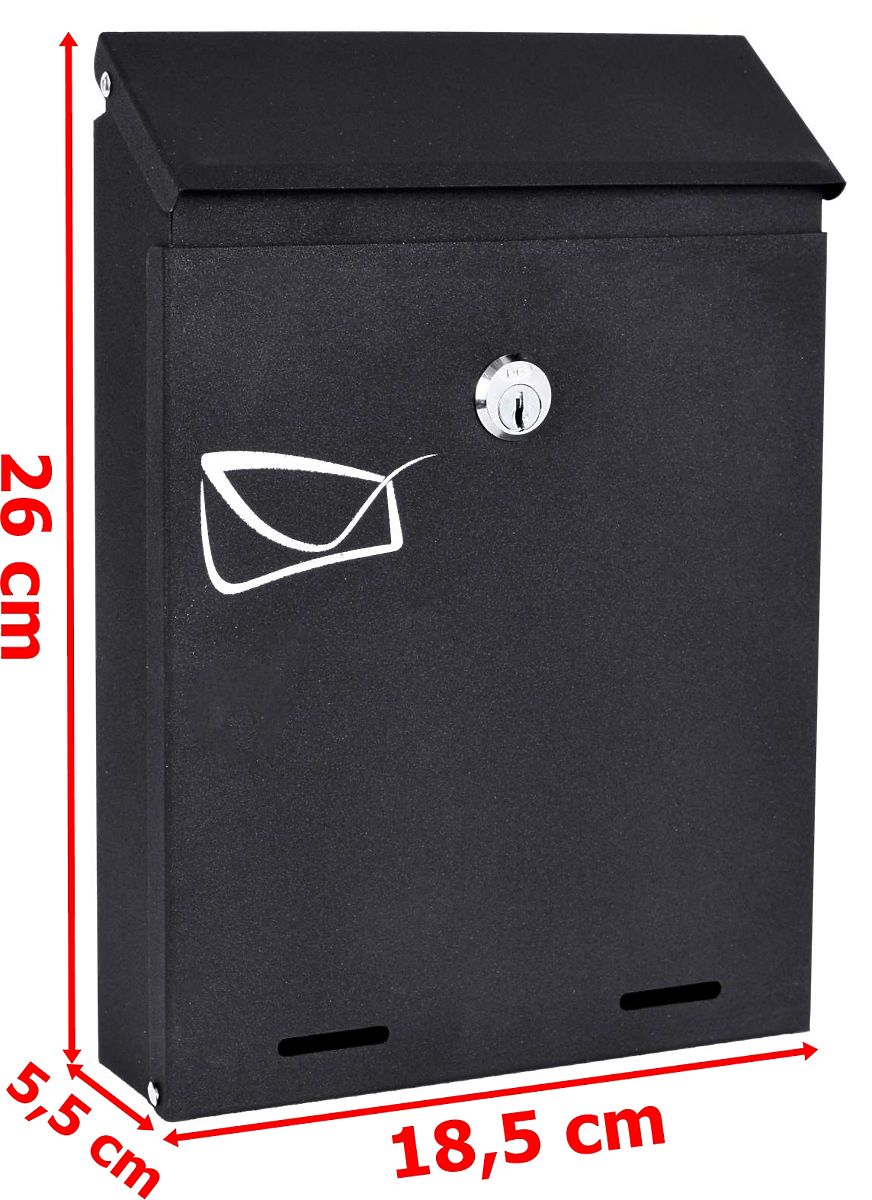 Nowoczesna i funkcjonalna skrzynka na listy Odvin antracyt, zaprojektowana z myślą o trwałości i elegancji. Kompaktowe wymiary 26 x 18,5 x 5,5 cm i otwór na listy 18 x 2 cm idealnie pasują do mniejszych przestrzeni. Wykonana z trwałej ocynkowanej stali z powłoką proszkową, odpowiednia do montażu na zewnątrz i wewnątrz. Bezpieczna dzięki zamkowi na klucz – zestaw zawiera 2 klucze i elementy montażowe. Solidność i styl w jednym!