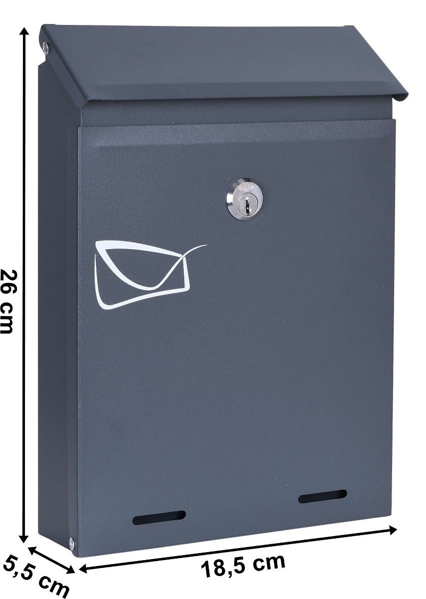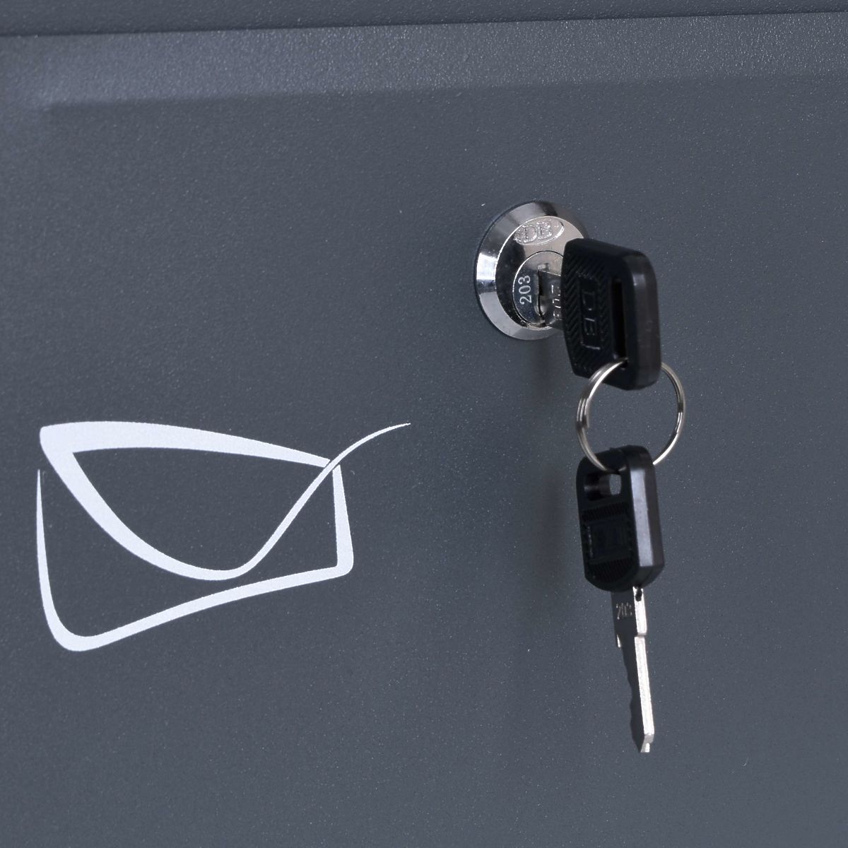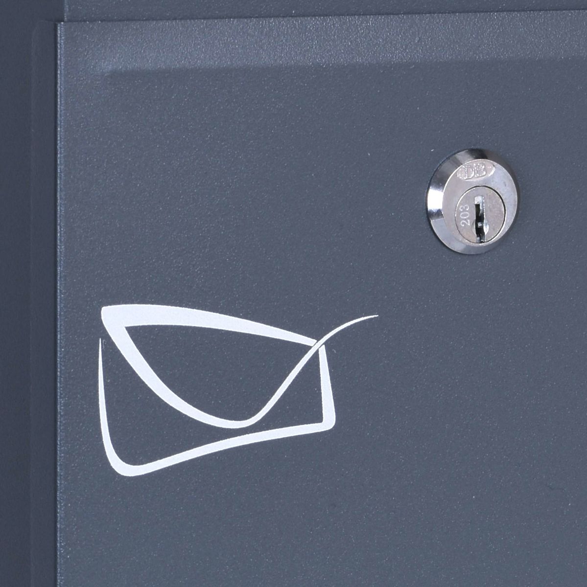 Nowoczesna i funkcjonalna skrzynka na listy Odvin antracyt, zaprojektowana z myślą o trwałości i elegancji. Kompaktowe wymiary 26 x 18,5 x 5,5 cm oraz otwór na listy 18 x 2 cm są idealne do mniejszych przestrzeni. Wykonana z ocynkowanej stali z powłoką proszkową, odporna na warunki atmosferyczne, odpowiednia do montażu na zewnątrz i wewnątrz. Bezpieczna dzięki zamkowi na klucz – zestaw zawiera 2 klucze i elementy montażowe. Solidność i styl w jednym!