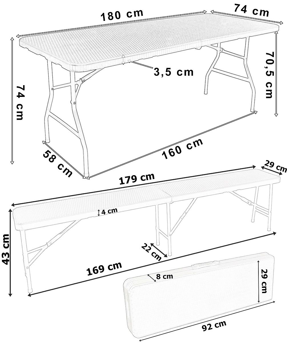 Składana ławka cateringowa jest bardzo praktyczna i trwała. Konstrukcja z malowanej proszkowo stali. Siedzisko z polietylenu HDPE. Wzór jak rattan. Odporna na promieniowanie słoneczne. Dzięki unikalnemu designowi cała konstrukcja chowa się w siedzisku ławki, zajmuje mało miejsca i tworzy ergonomiczną walizkę, łatwą do przenoszenia.
