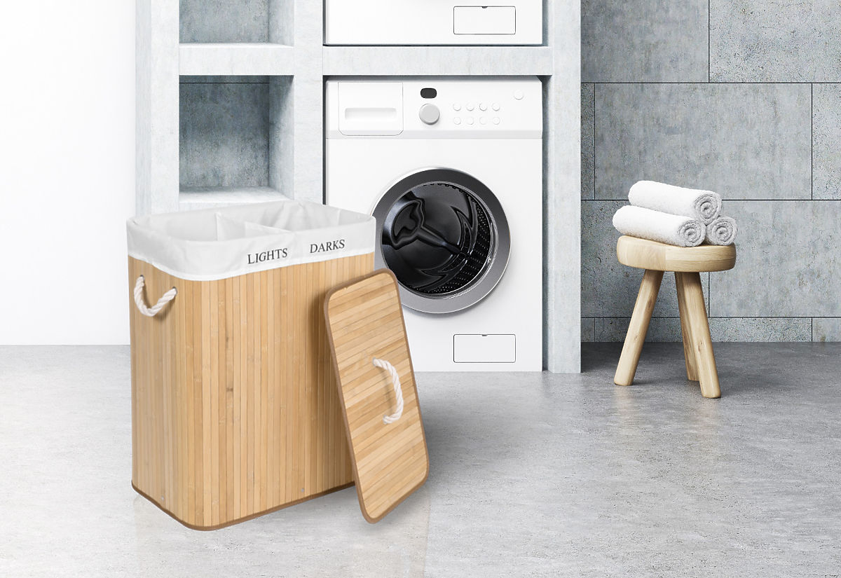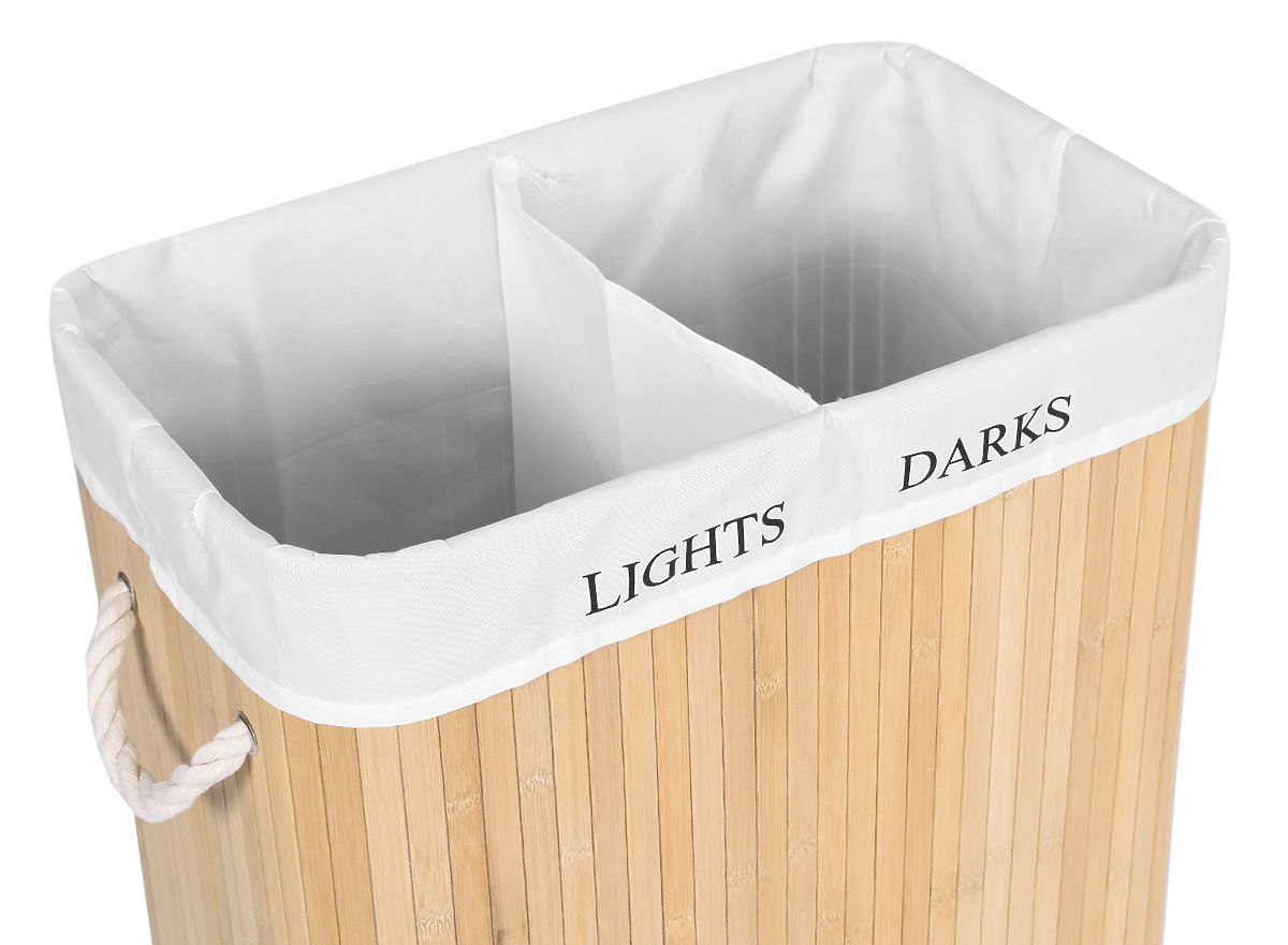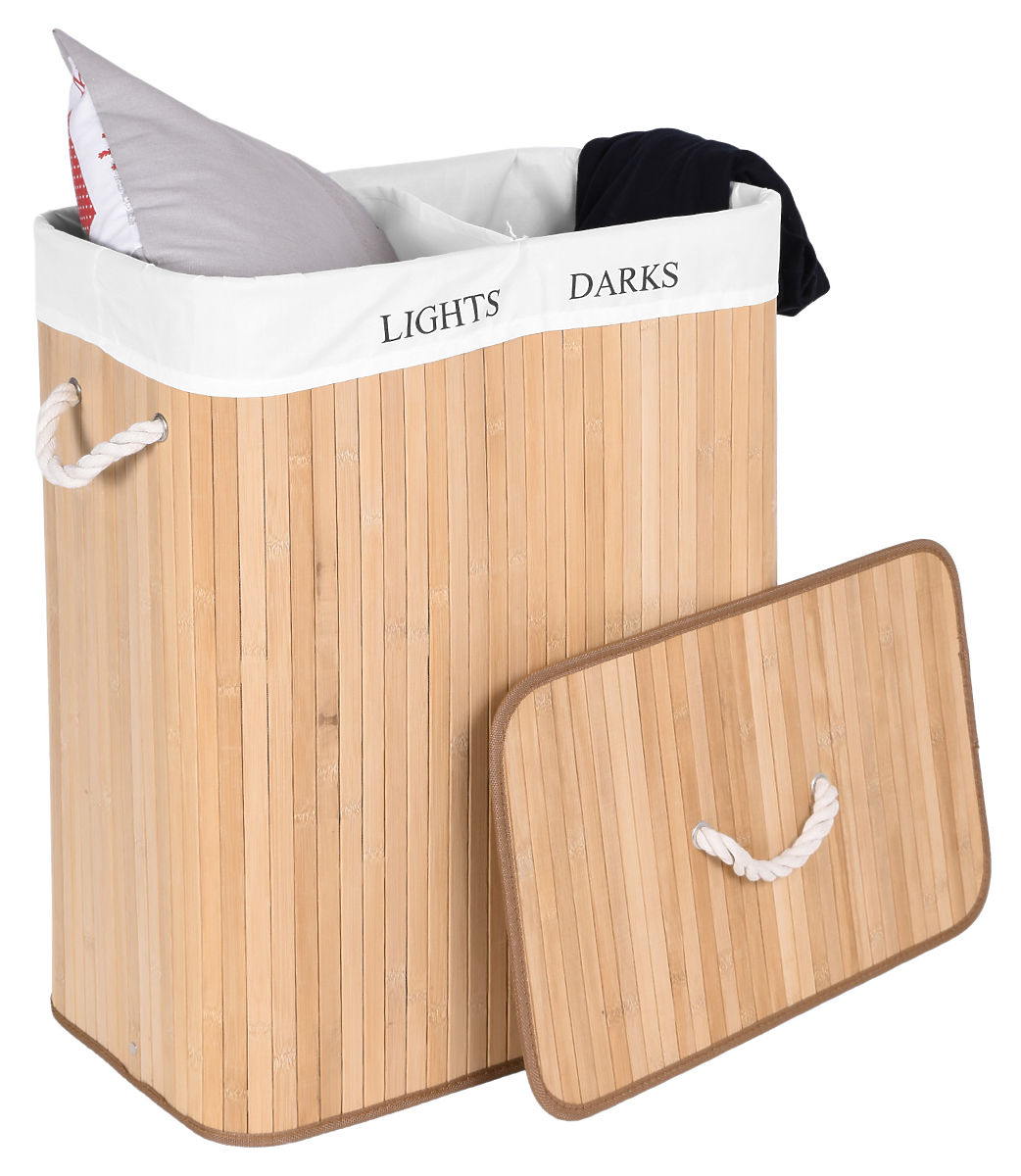 Bambusowy kosz na pranie z 2 komorami naturalny