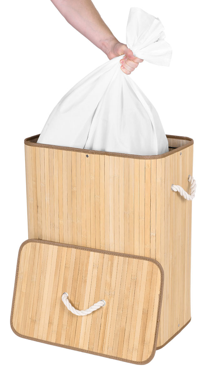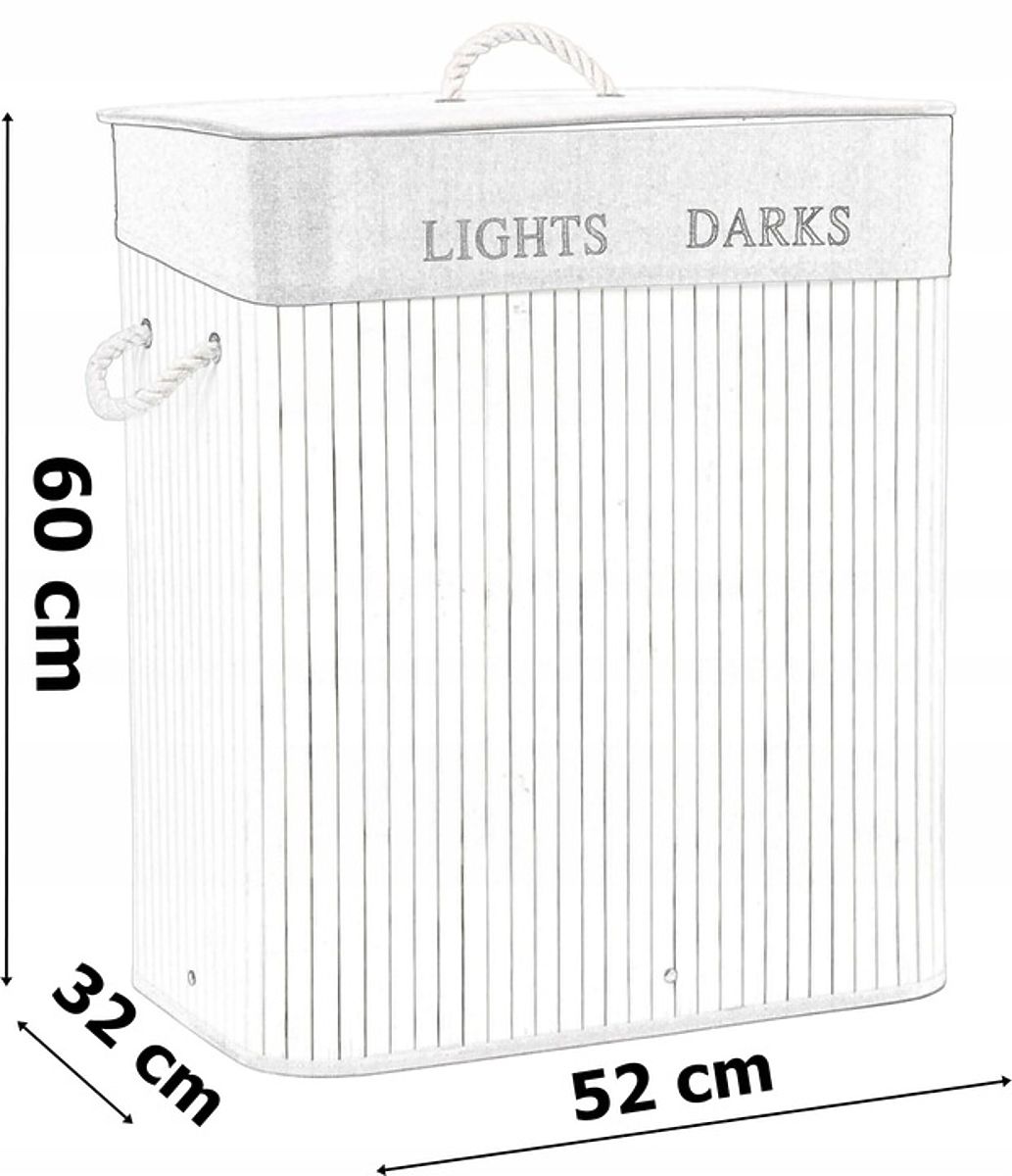 Najpiękniejszy i najtrwalszy stylowy kosz na pranie o pojemności 100 litrów. Wykonany z naturalnego bambusa. Wnętrze wyposażone jest w lniany worek z praktyczną przegrodą na jasne i ciemne pranie. Prosta konstrukcja, solidna struktura. Skrywa nieprzyjemne zapachy. Umożliwia wygodne i szybkie pranie.