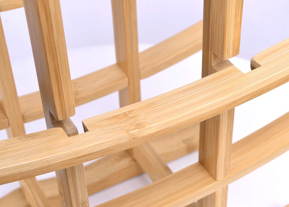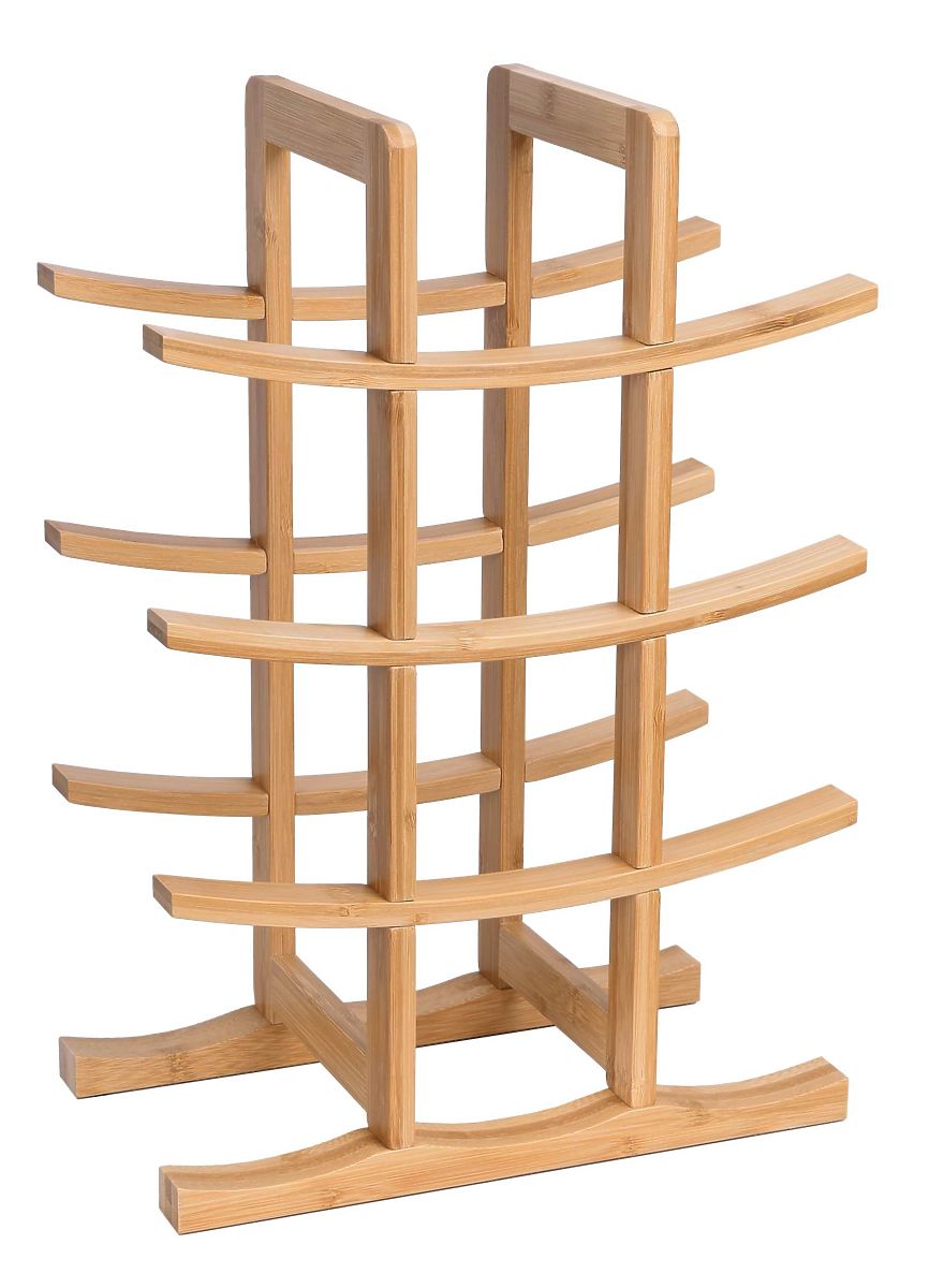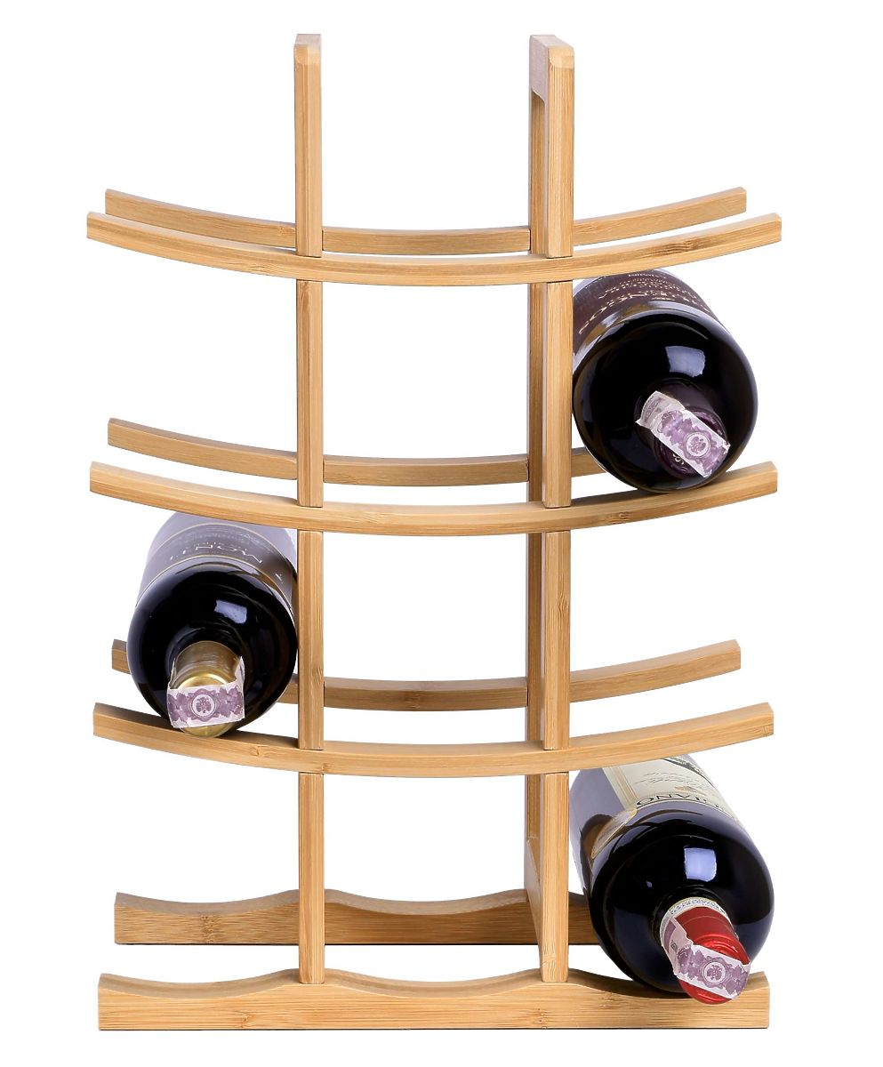 Ten wysokiej jakości stojak na wino wykonany z drewna bambusowego pomieści do 12 butelek wina. Ergonomiczny - zajmuje mało miejsca, ale mieści naprawdę dużo. Stojak wyróżnia się przede wszystkim swoją naturalnością i lekko azjatyckim designem. Dzięki dwóm bocznym częściom i zakrzywionym poprzecznym wzmocnieniom przypomina japońskie bramy i przyciąga uwagę. Dzięki odporności na wilgoć stojak na butelki nadaje się również do kuchni. 4 podkładki z miękkiej gumy zapewniają bezpieczne ustawienie i jednocześnie chronią powierzchnię przed nieestetycznymi zarysowaniami. Stojak zapewnia idealne przechowywanie butelek z winem - korki nie wysychają.