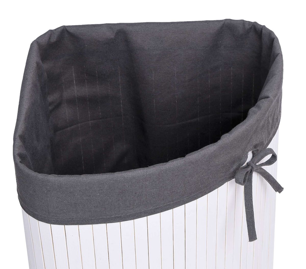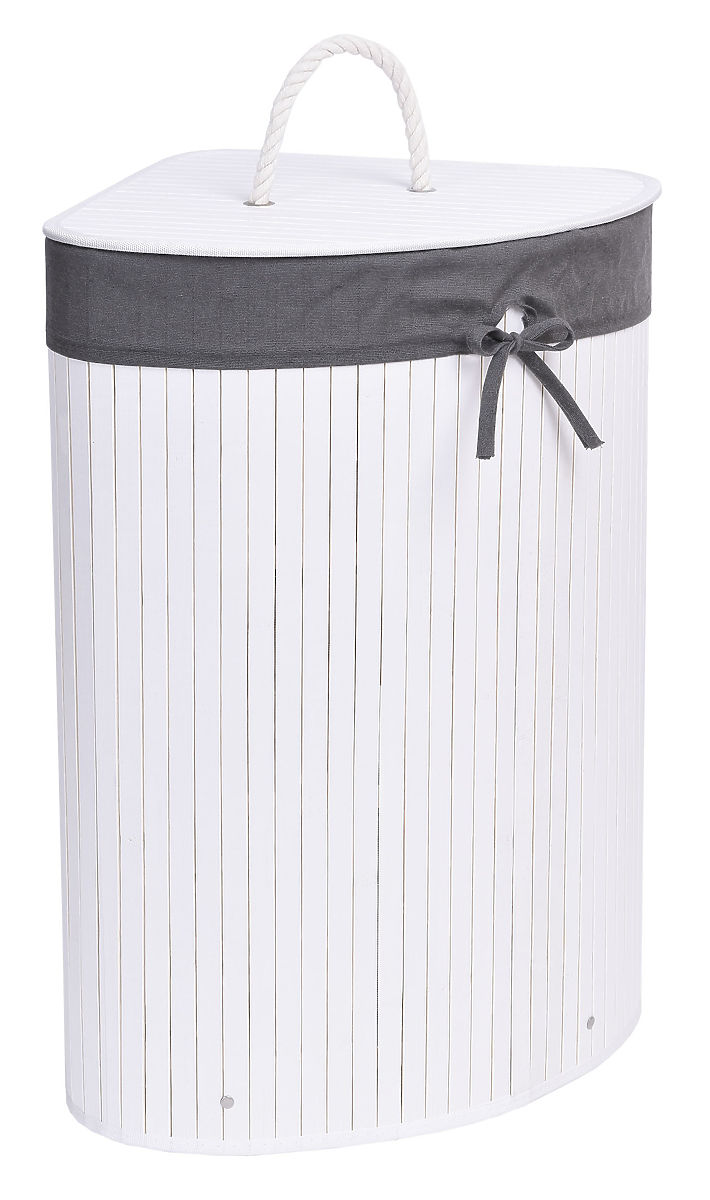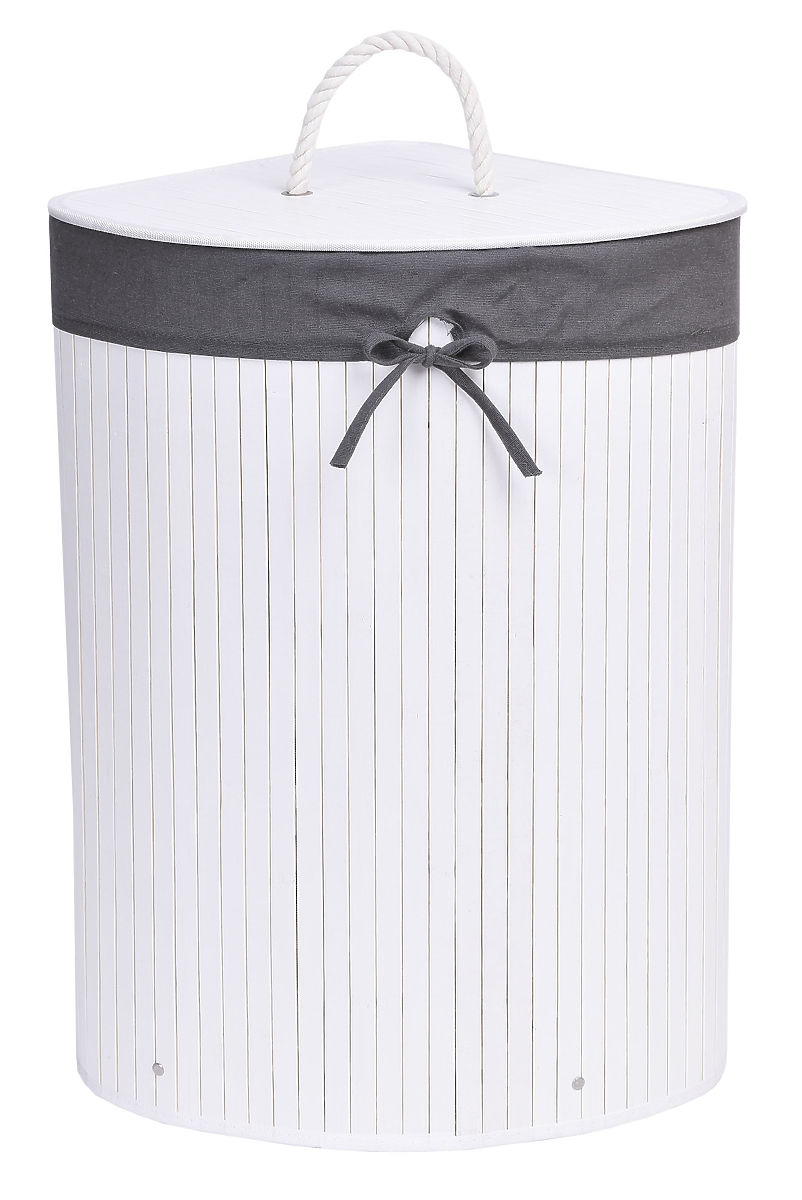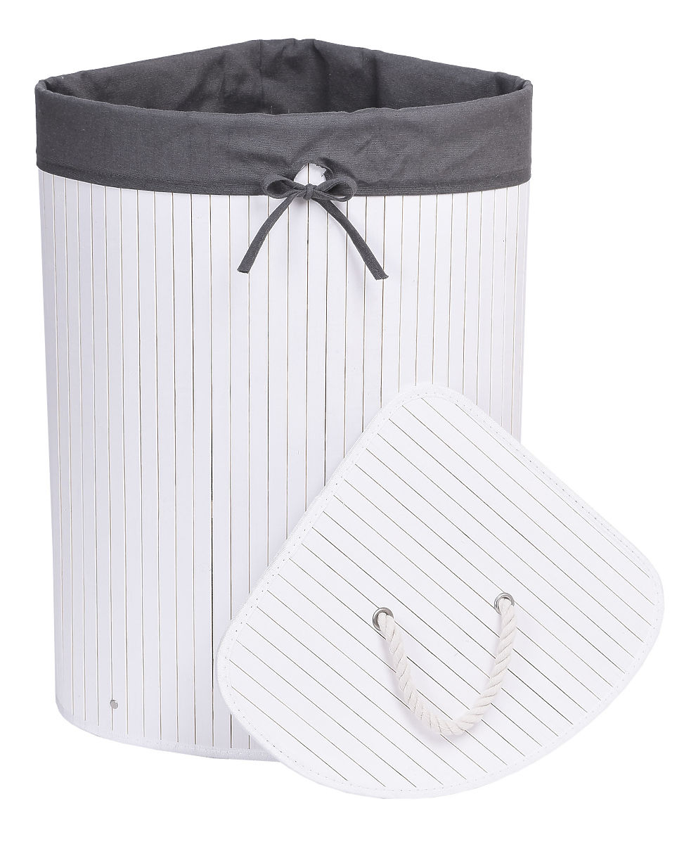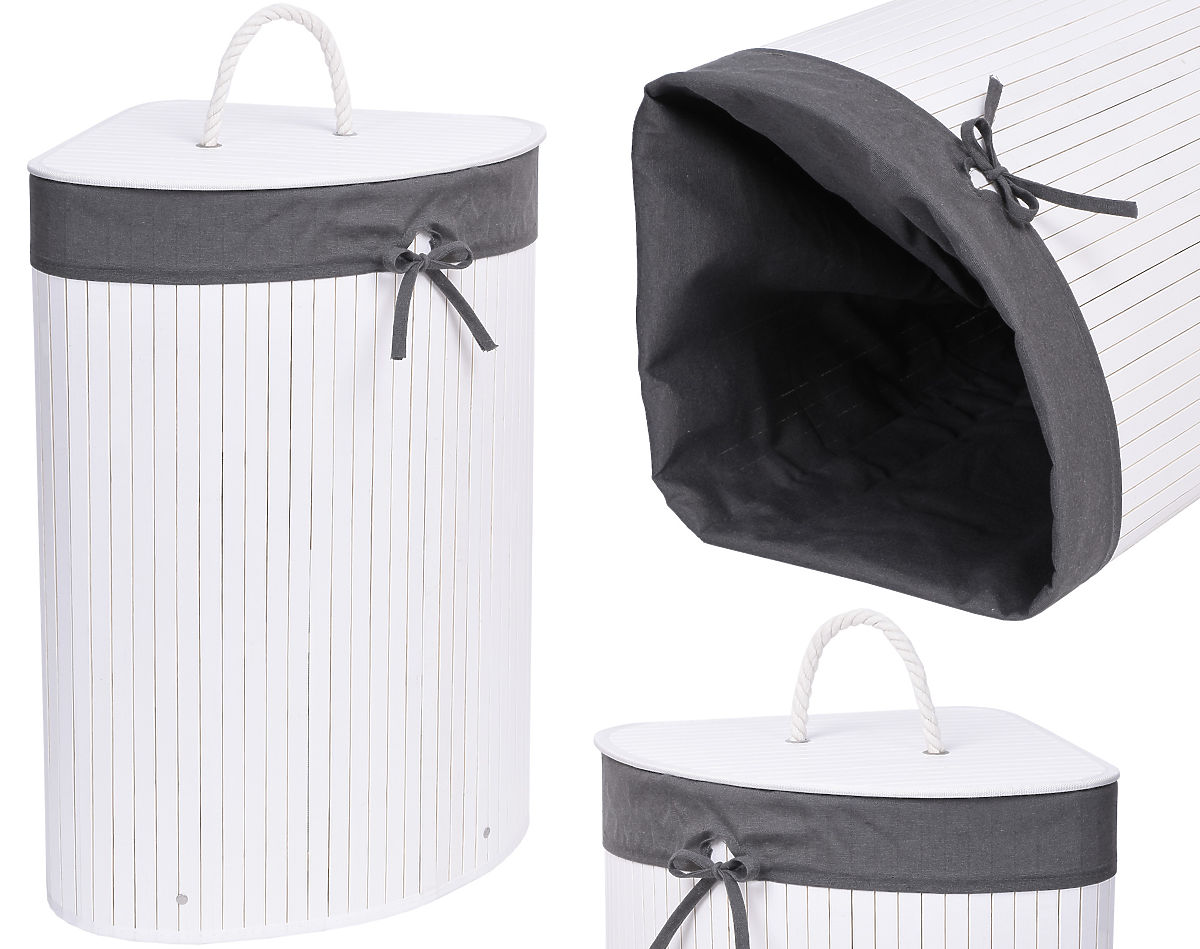 Bambusowy narożny kosz na pranie z pokrywą biało-szary