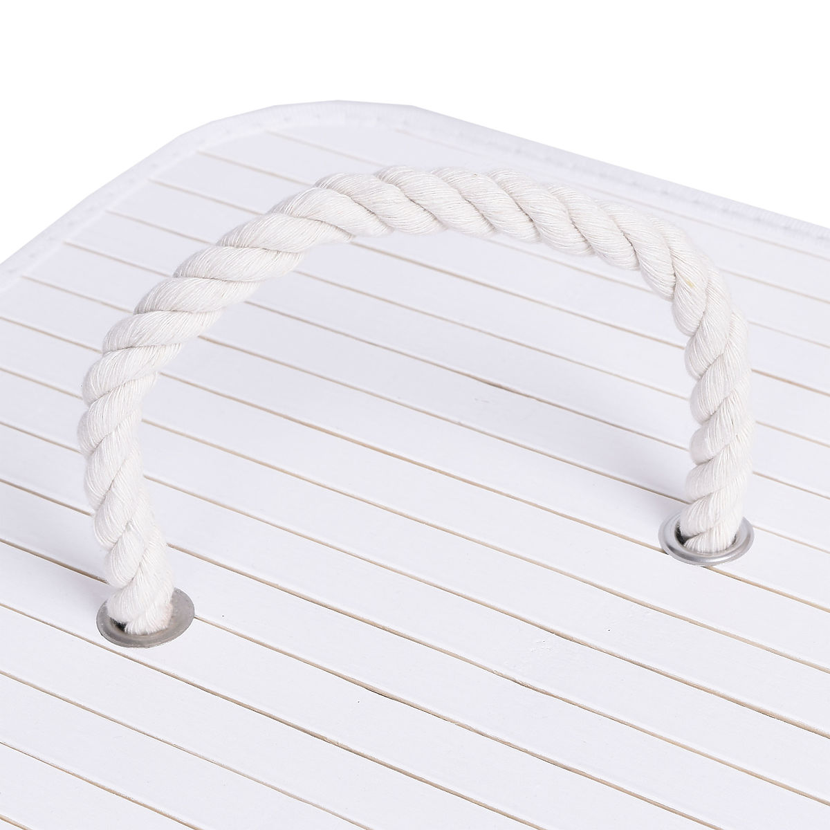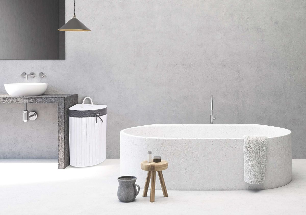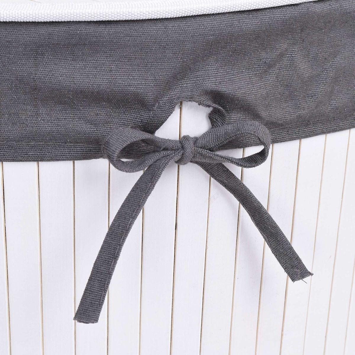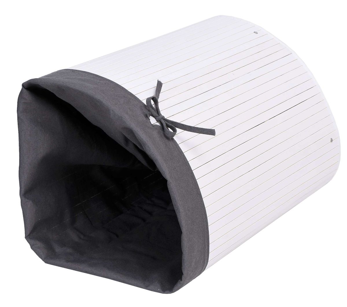 Bambusowy narożny kosz na pranie z pokrywą biało-szary