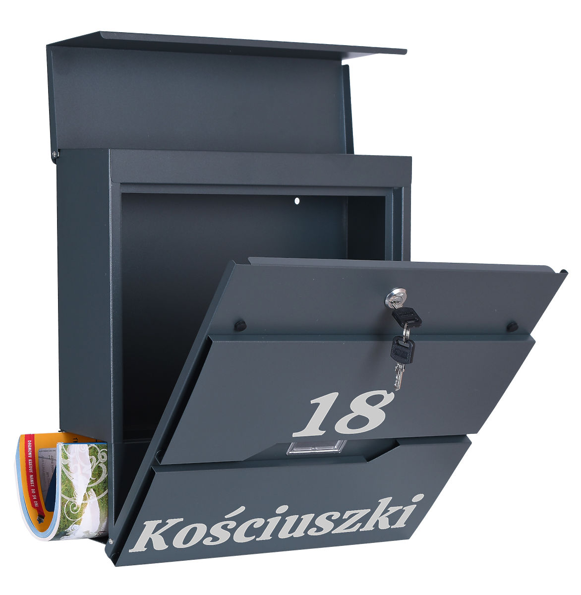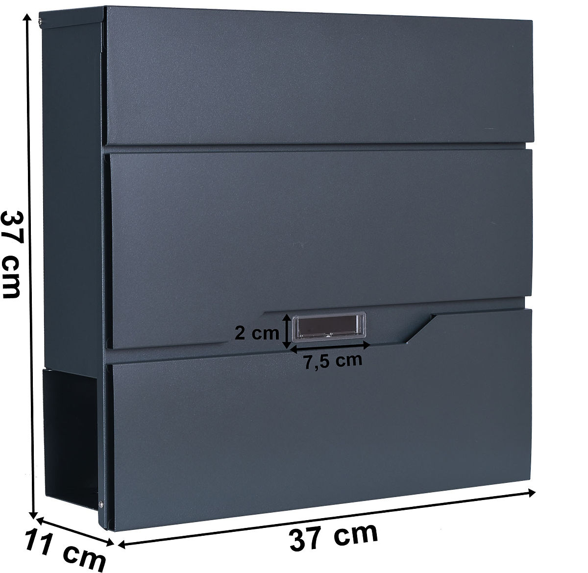 Stylowa i funkcjonalna skrzynka na listy, która łączy nowoczesny design z trwałością! Wymiary 37 x 37 x 11 cm, solidna stal ocynkowana z powłoką proszkową i odporność na warunki atmosferyczne zapewniają, że jest idealna do użytku na zewnątrz i wewnątrz. Praktyczne okienko adresowe pozwala natychmiast zobaczyć oczekującą korespondencję. Otwór na listy 33 x 3,5 cm, dodatkowe miejsce na gazety i zamknięcie na klucz – skrzynka Vidar to bezpieczeństwo i wygoda!
