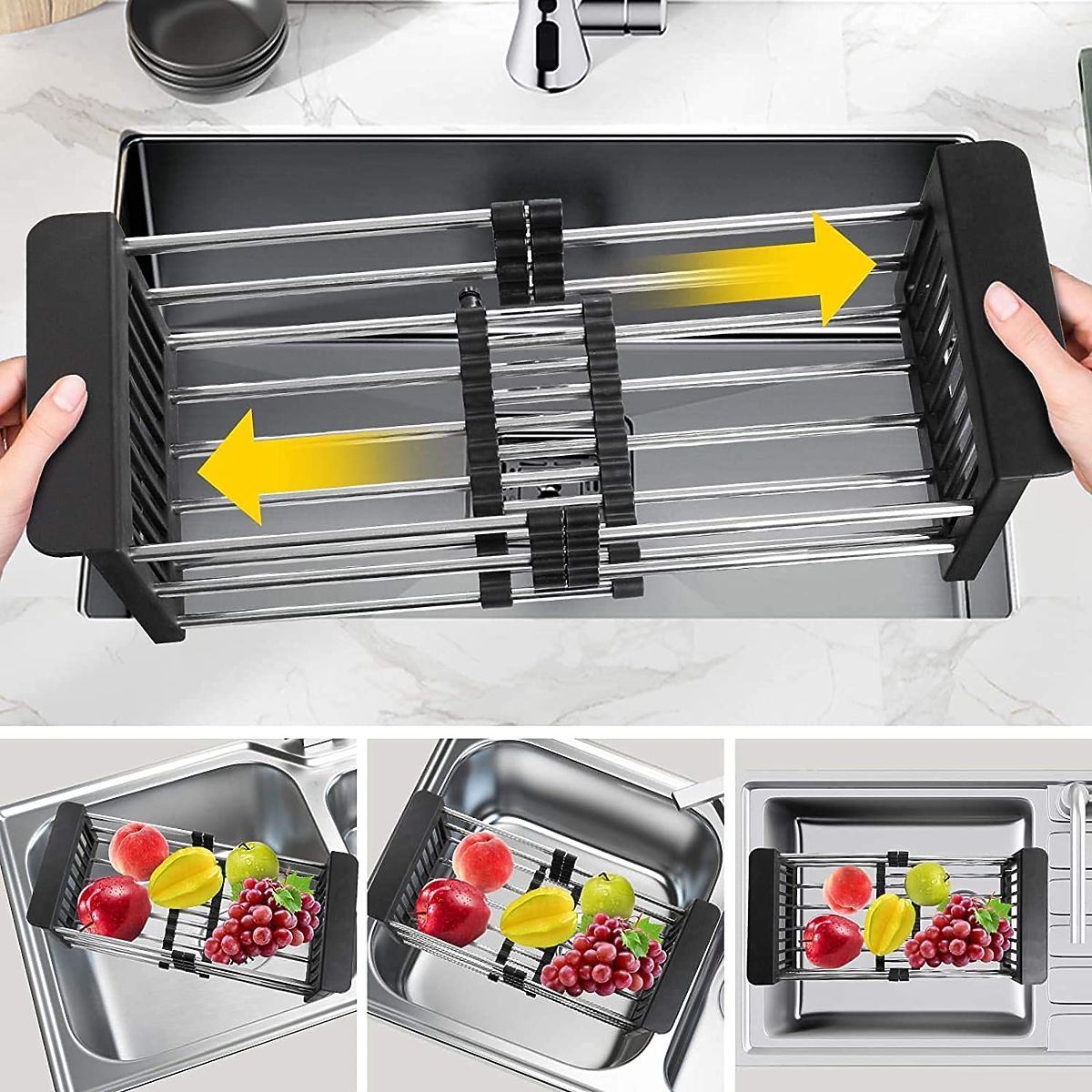 Praktyczny i uniwersalny ociekacz na warzywa i owoce. Wykonany z trwałego plastiku i stali nierdzewnej. Odporny na korozję i bardzo trwały. Konstrukcja teleskopowa umożliwia dostosowanie do wymaganej wielkości zlewu. Koszyk jest regulowany w zakresie od 28 cm do 43 cm.