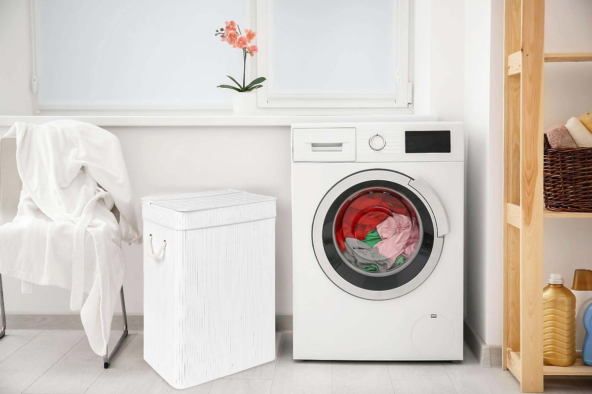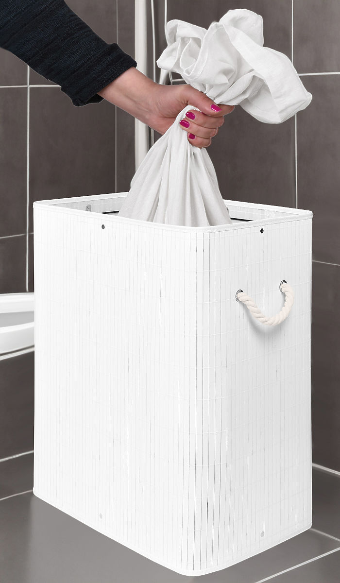Bambusowy kosz na pranie z pokrywą SOREN 80L biały