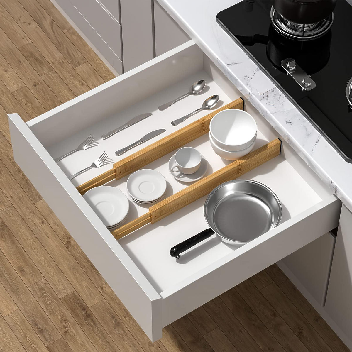 Przeznaczenie: kuchnia, biuro, różne typy szuflad | Kolor: naturalny bambus