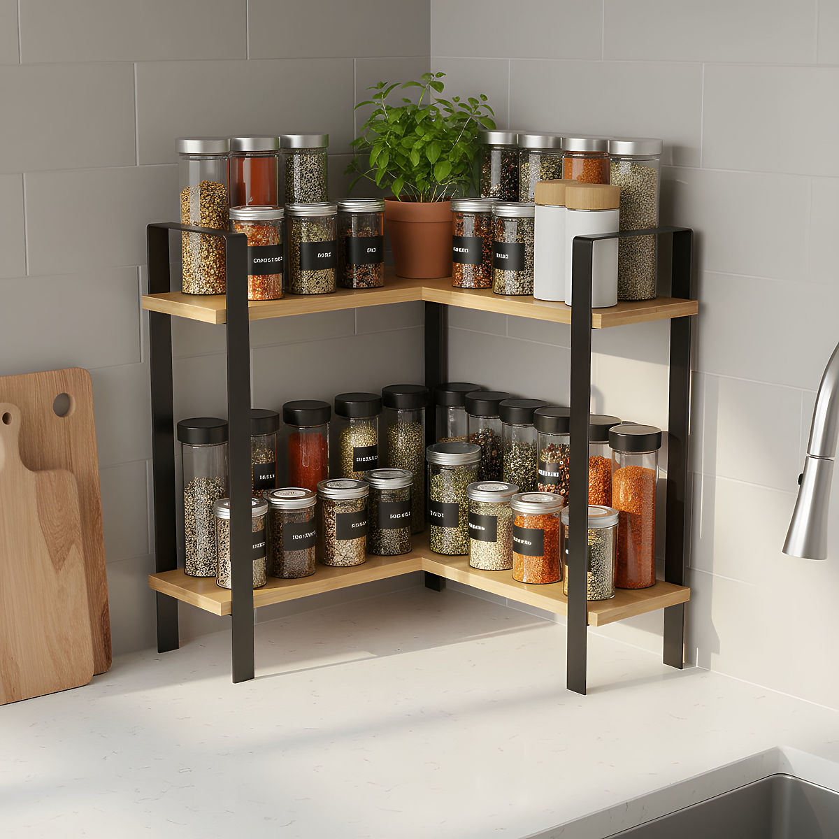✅ Praktyczność i wygoda: Dwie przestronne półki umożliwiają wygodne przechowywanie różnych przypraw i akcesoriów kuchennych.