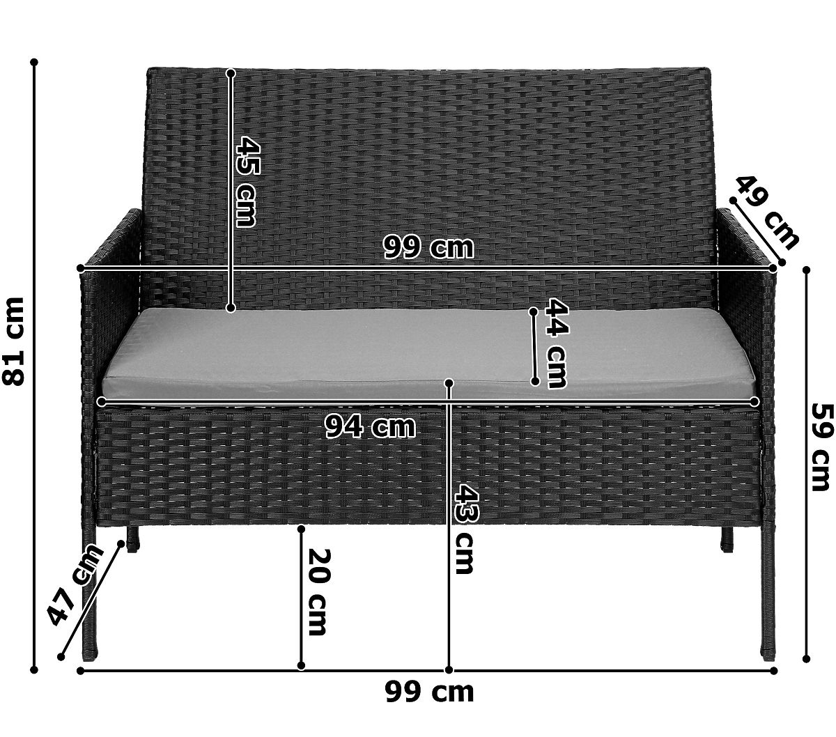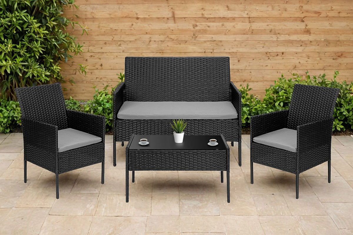 Meble ogrodowe z technoratanu zestaw 4w1 MAGNOLIA czarny szare poduszki