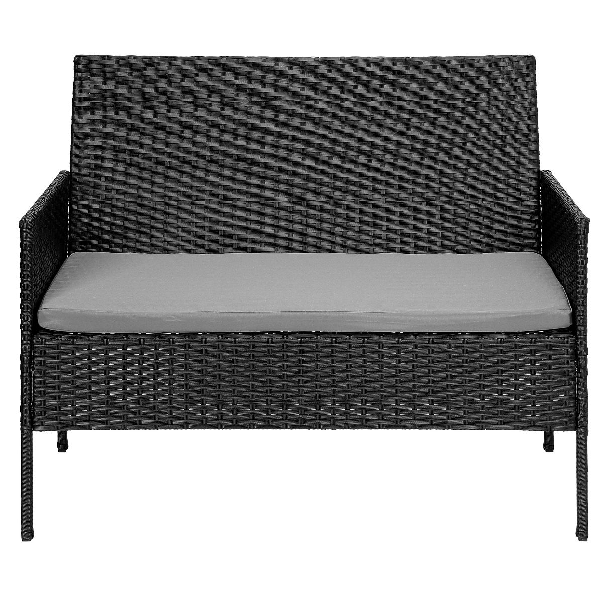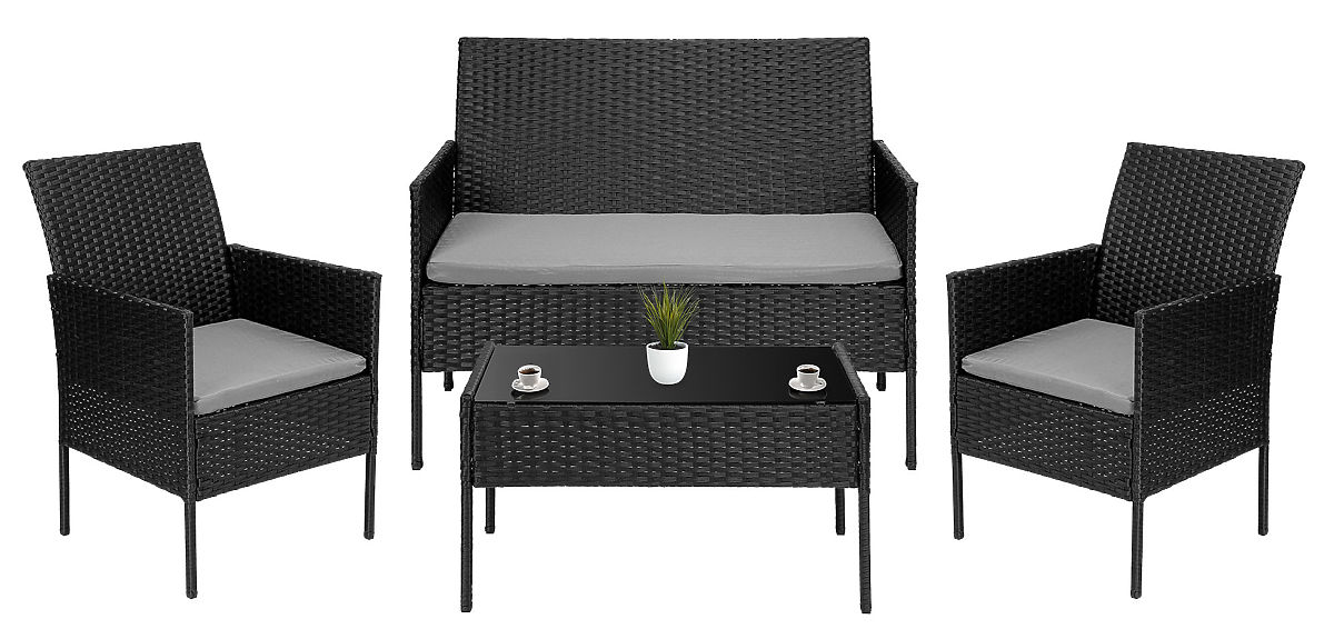 Zestaw mebli ogrodowych z technoratanu MAGNOLIA czarny z szarymi poduszkami