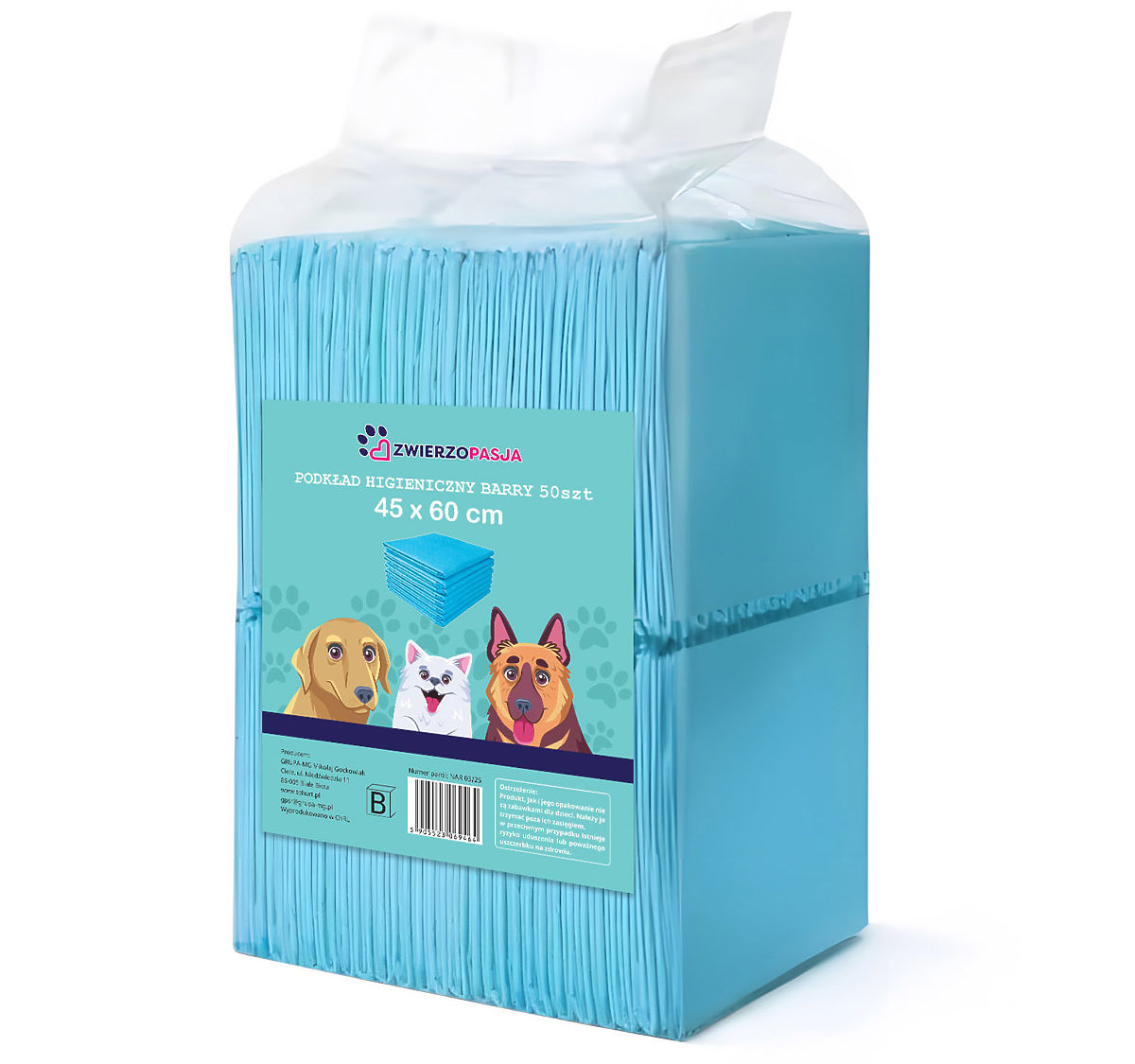 Higieniczne podkładki BARRY 45x60 50 szt. Zastosowanie: Dla małych zwierząt | Rozmiar: 45 x 60 cm Higieniczne podkładki Barry są praktycznym i niezawodnym wsparciem dla każdego właściciela psa. Ułatwiają utrzymanie czystości w domu, wspierają nawyki higieniczne u szczeniąt i skutecznie chronią podłogi oraz legowiska przed zanieczyszczeniami. Dzięki nim Ty i Twój pupil możecie cieszyć się większym komfortem i spokojem każdego dnia.