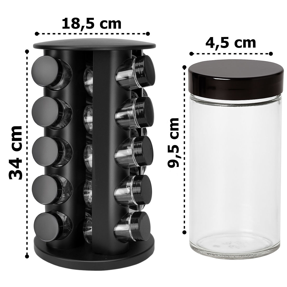 Obrotowy stojak na przyprawy ROTOR BLACK 20 słoików + 72 naklejki