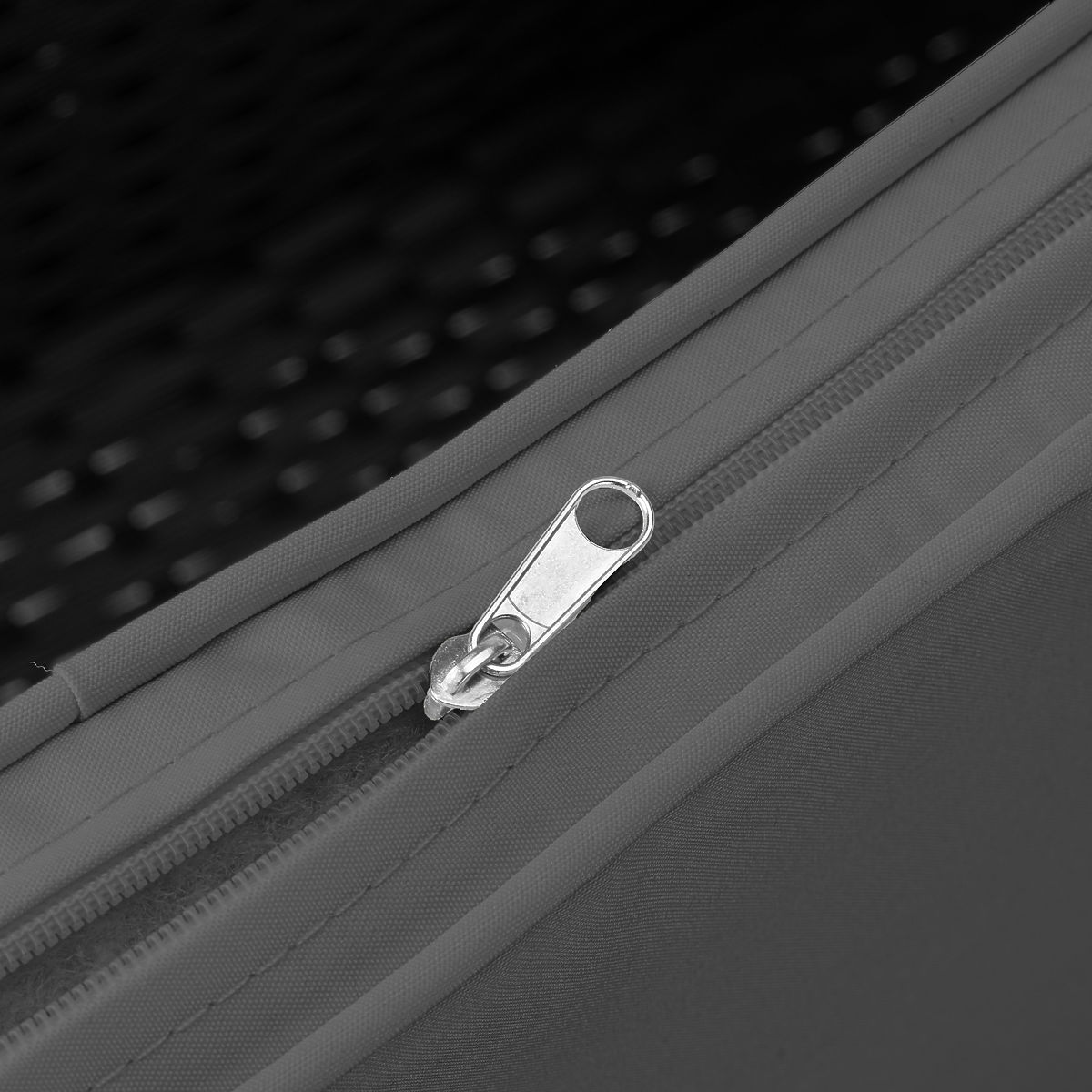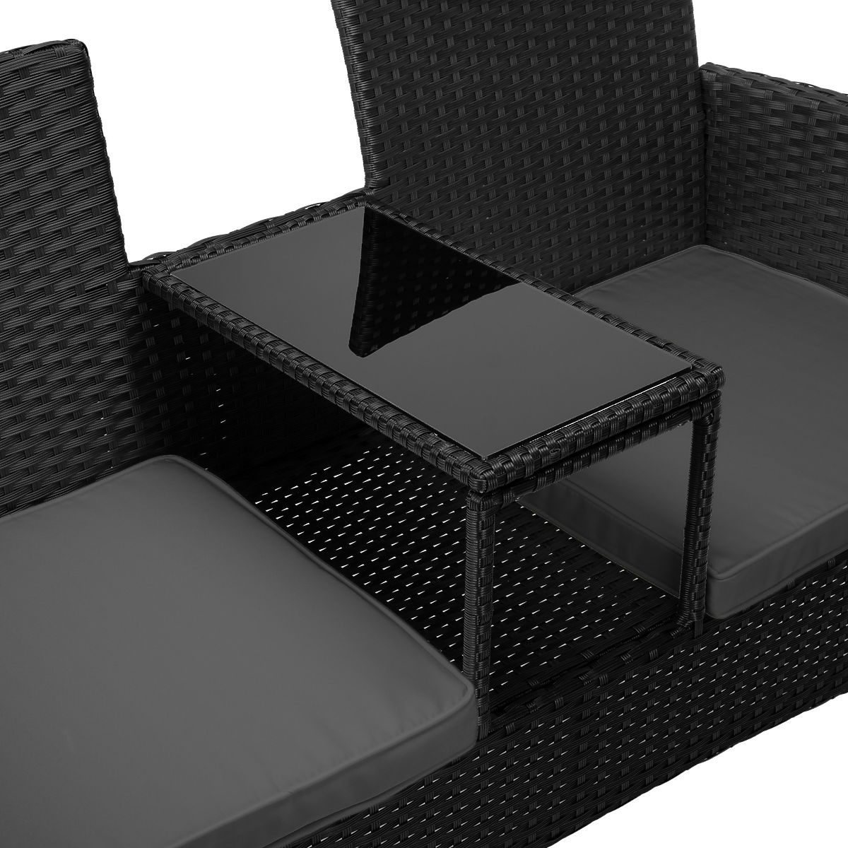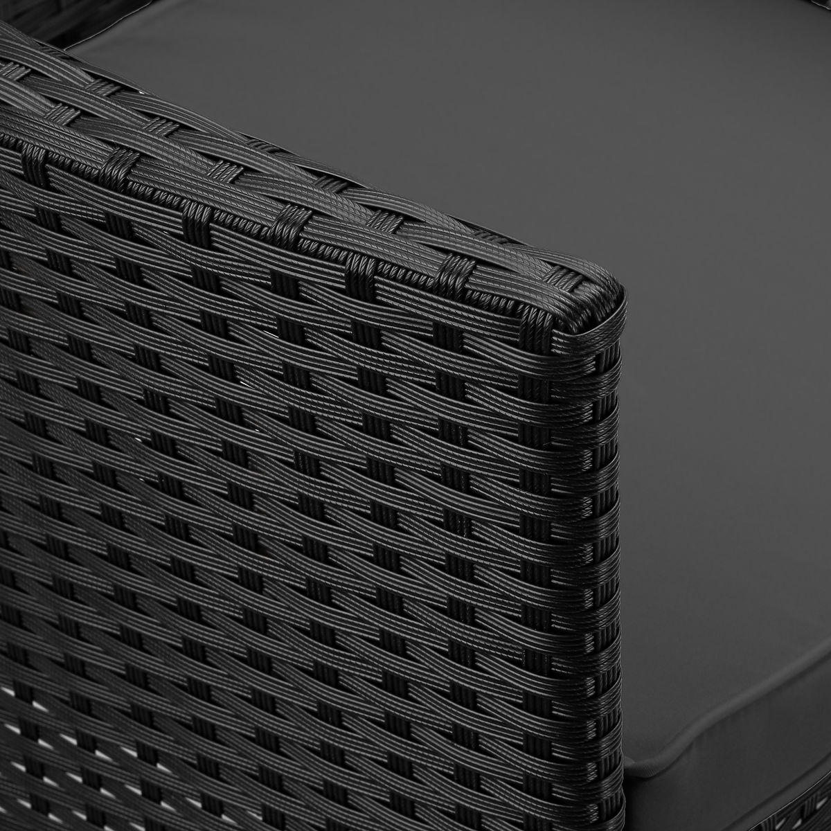 Ławka ogrodowa z technoratanu sofa CORDOBA czarna z szarymi poduszkami