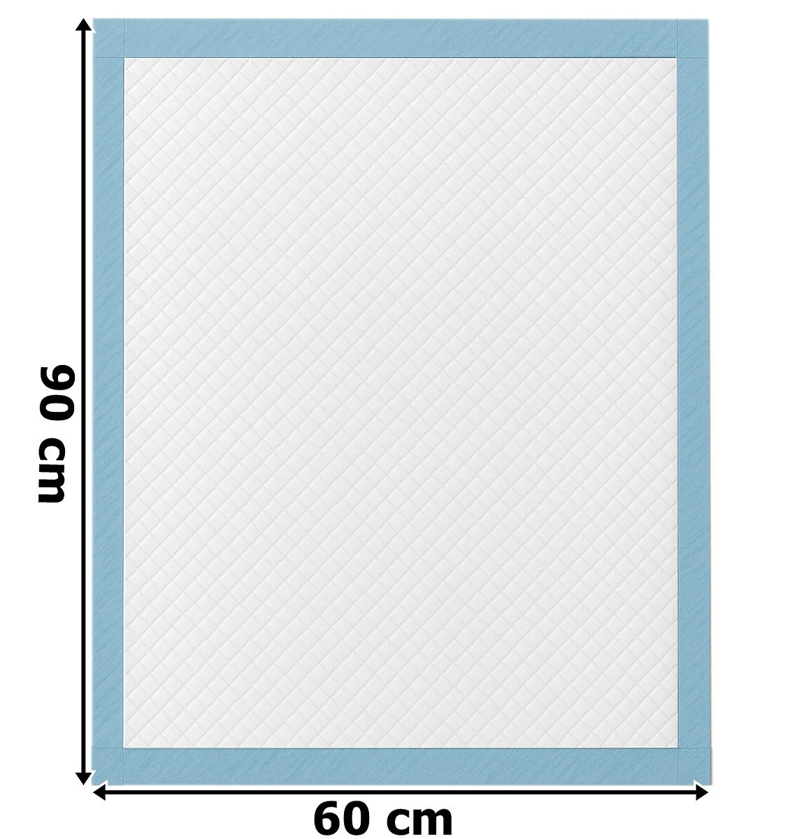 ☑️ Specyfikacja i wymiary produktu: Wymiary: 60 × 90 cm Liczba sztuk w jednym opakowaniu: 100 Materiał: Włóknina Papier SAP (superabsorbent poliakrylanu sodu) — granulki absorbujące Puszysta pulpa drzewna PE (polietylen)