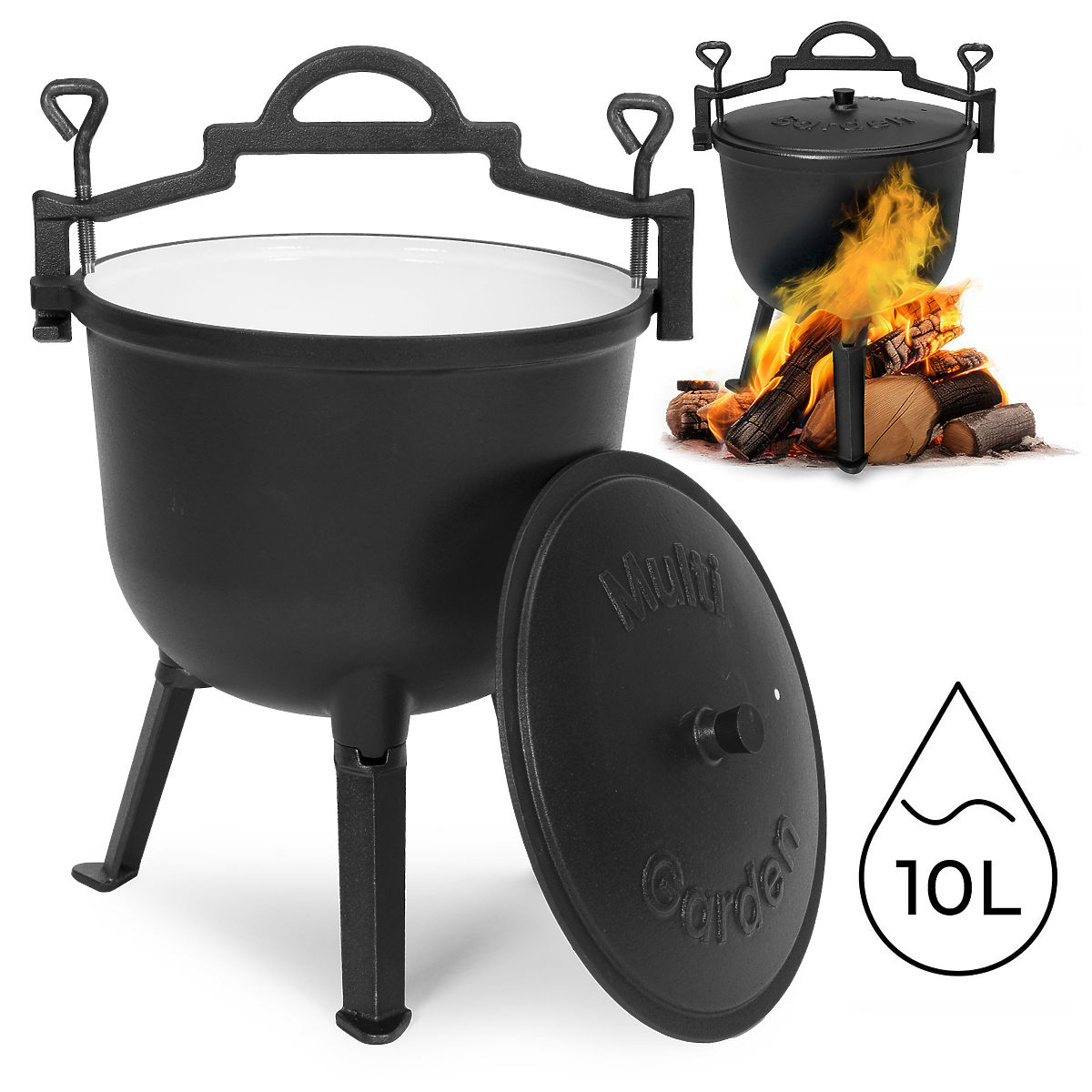 Lukahome.pl » Ogród botaniczny / Grille / Emaliowany żeliwny kociołek 10L stojący garnek myśliwski ognisko grill MultiGarden