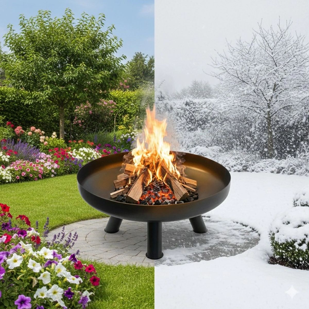 SPRAWDZI SIĘ W KAŻDEJ PORZE ROKUPalenisko ogrodowe zostało zaprojektowane tak, aby można było je używać przez cały rok. Dzięki trwałej konstrukcji dobrze sprawdza się w różnych warunkach atmosferycznych, dlatego może być używane zarówno w ciepłe letnie wieczory, jak i podczas chłodniejszych dni w zimowej scenerii ogrodu.