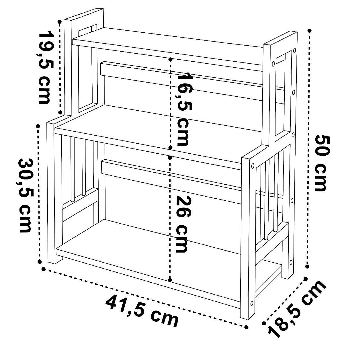 Odległość między półkami: 26 cm i 16,5 cm