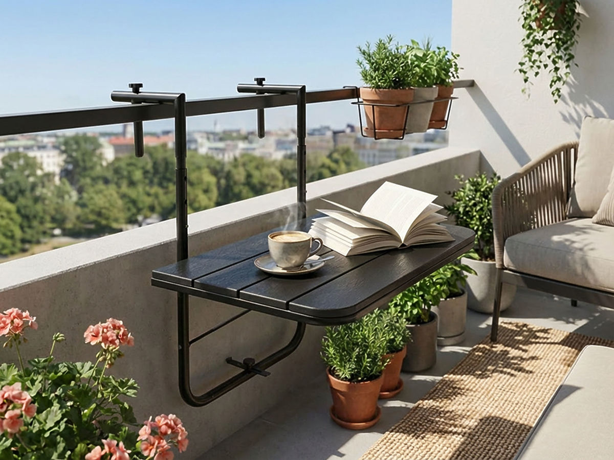 Czarny stolik balkonowy Aretto to idealny wybór dla tych, którzy chcą w pełni wykorzystać przestrzeń balkonu, nawet jeśli jest mały. Jego główną zaletą jest składana konstrukcja, dzięki której stolik można szybko złożyć, gdy nie jest potrzebny. To oszczędza miejsce i utrzymuje porządek, co docenią zwłaszcza właściciele małych mieszkań. Stolik zapewnia stabilną powierzchnię na filiżankę kawy, książkę lub laptopa, ułatwia organizację codziennego odpoczynku i czyni balkon praktycznym przedłużeniem wnętrza. Solidne wykonanie i uniwersalny kształt gwarantują wygodę użytkowania, estetyczny wygląd i długą żywotność.