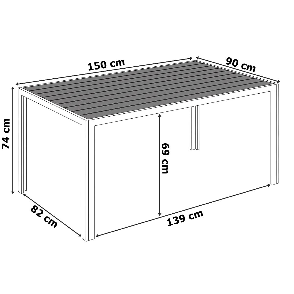 Ogrodowy stół aluminiowy ZENON 150x90 cm