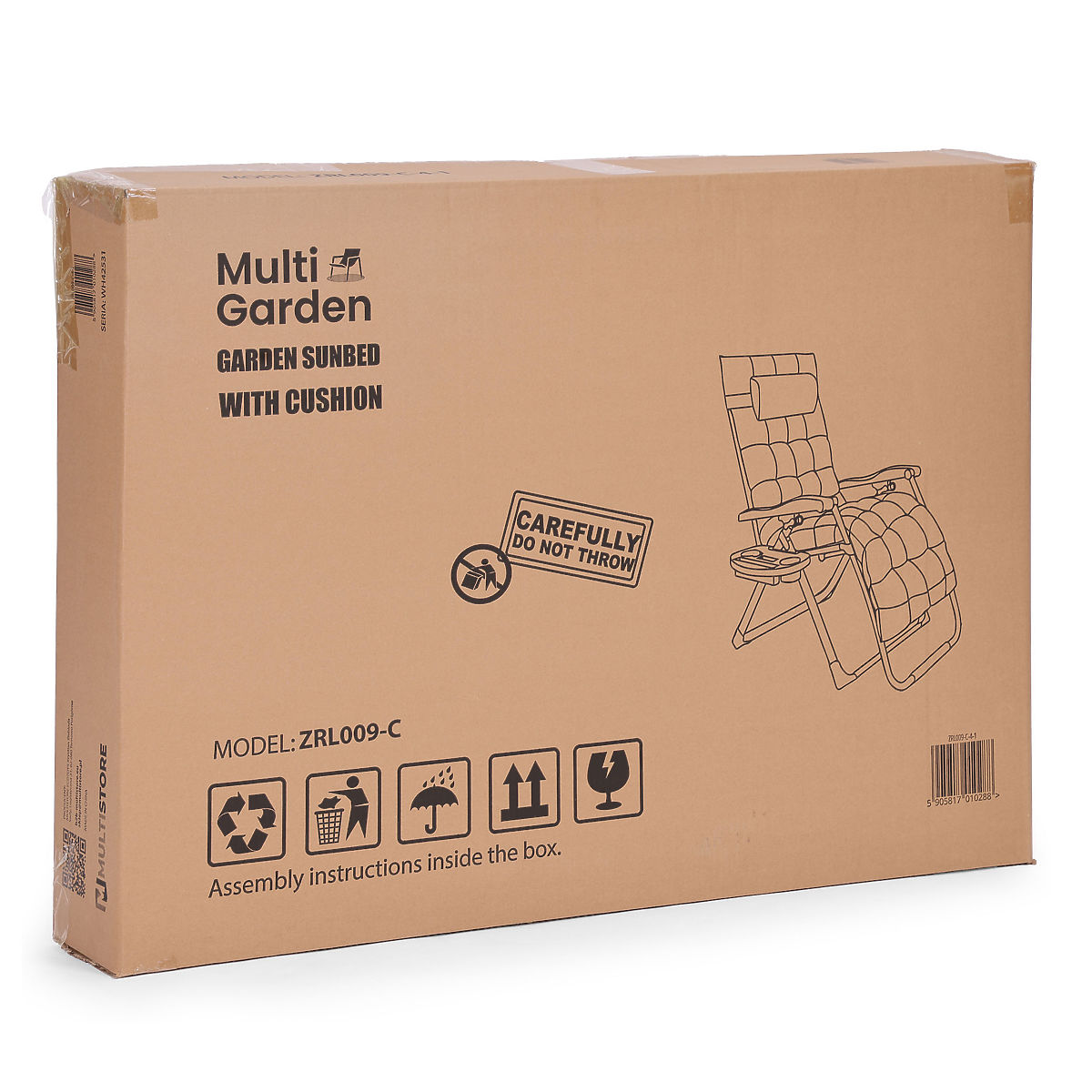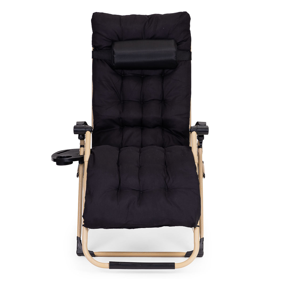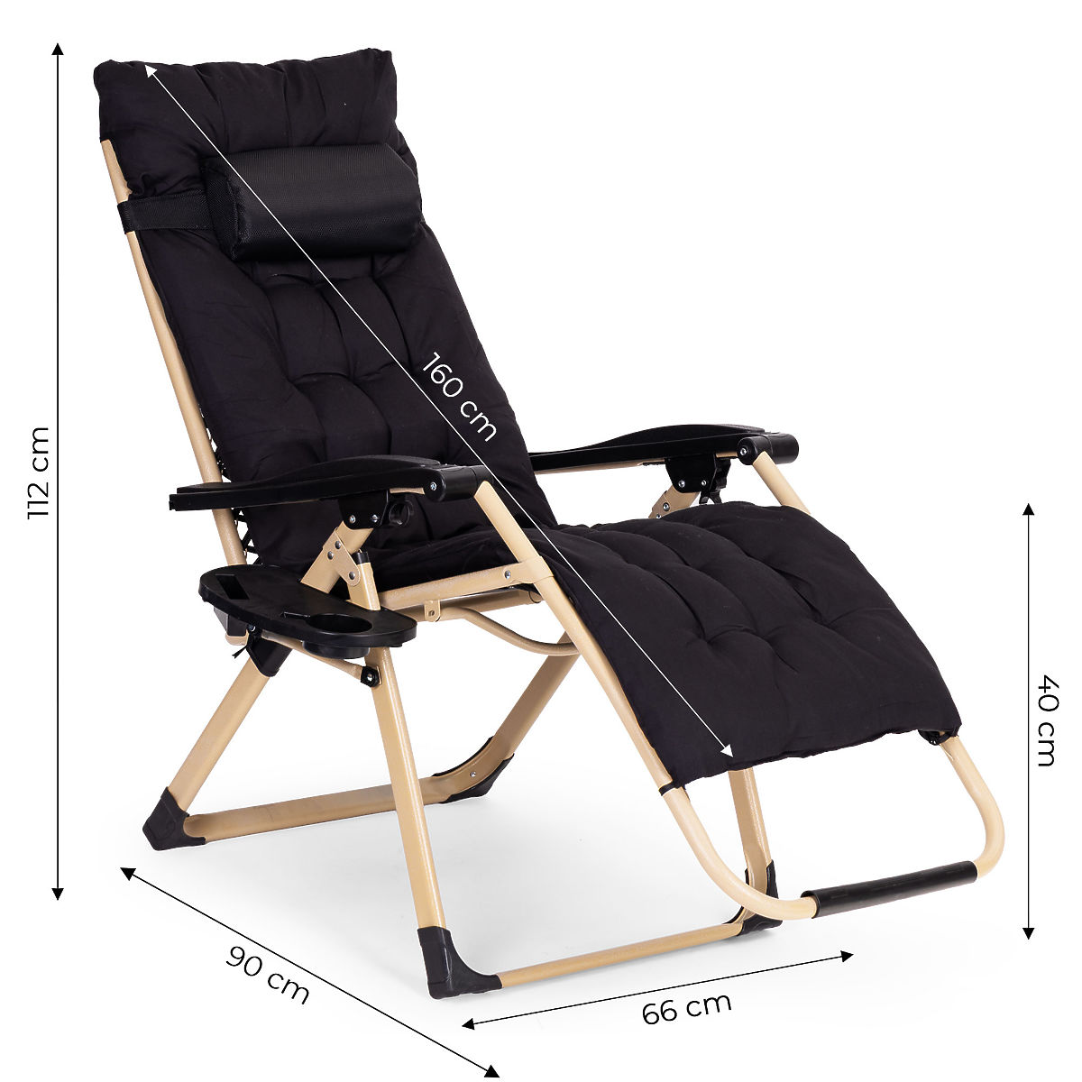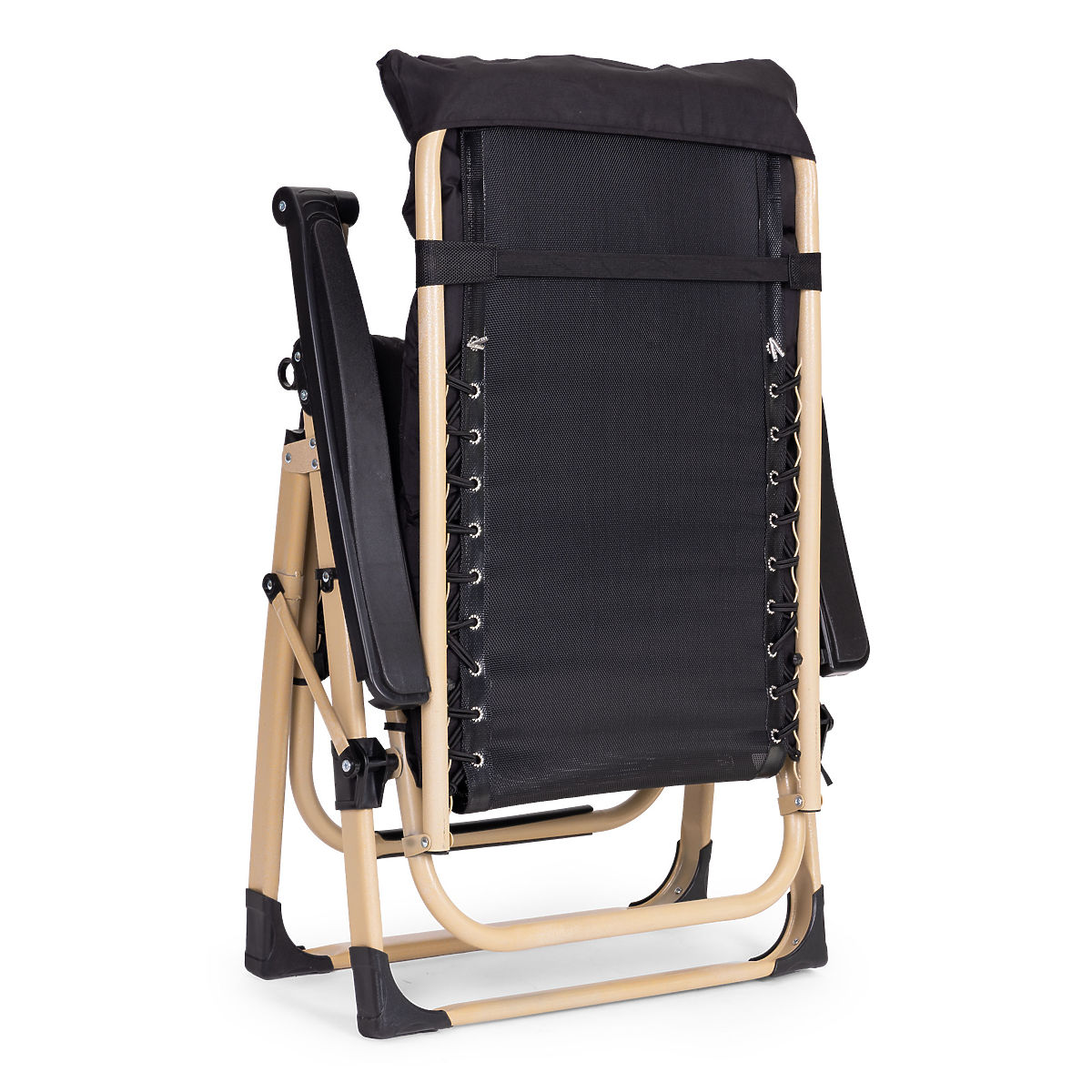 Lukahome.pl » Meble ogrodowe / Leżaki ogrodowe / Ogrodowy leżak plażowy z poduszką i regulowanym oparciem czarny złota rama MultiGarden