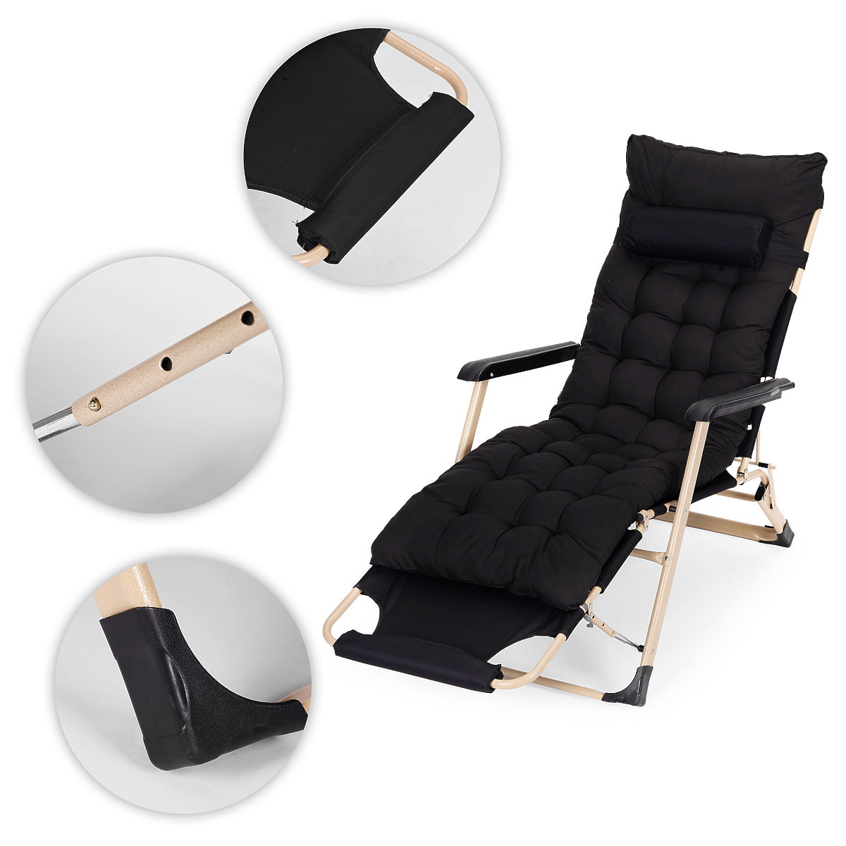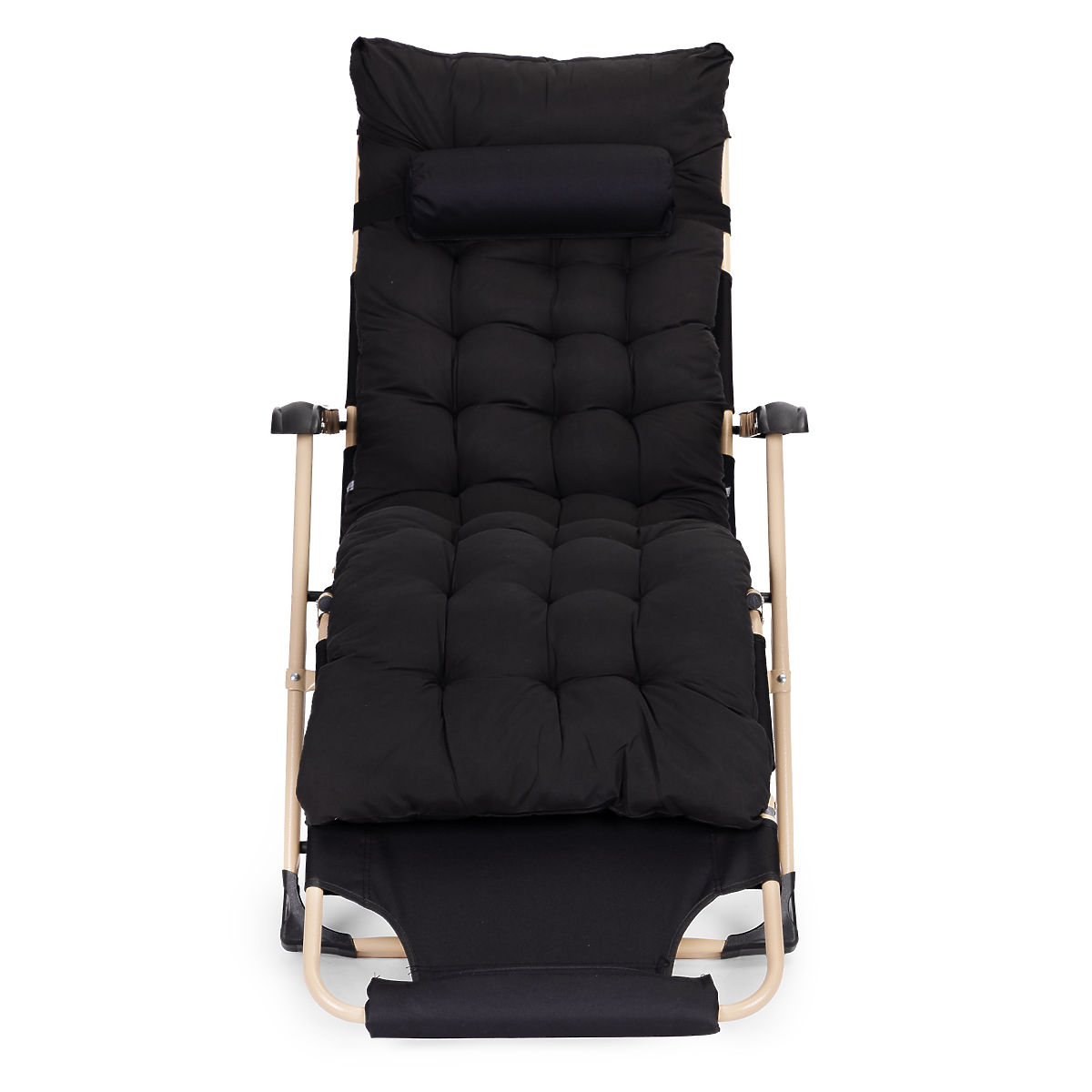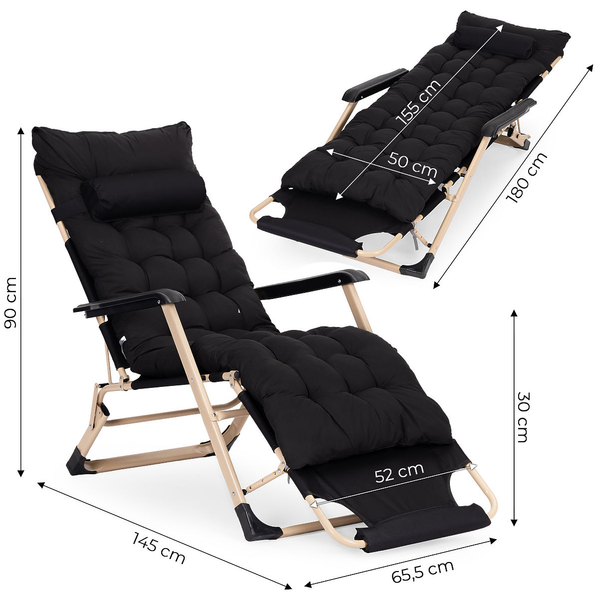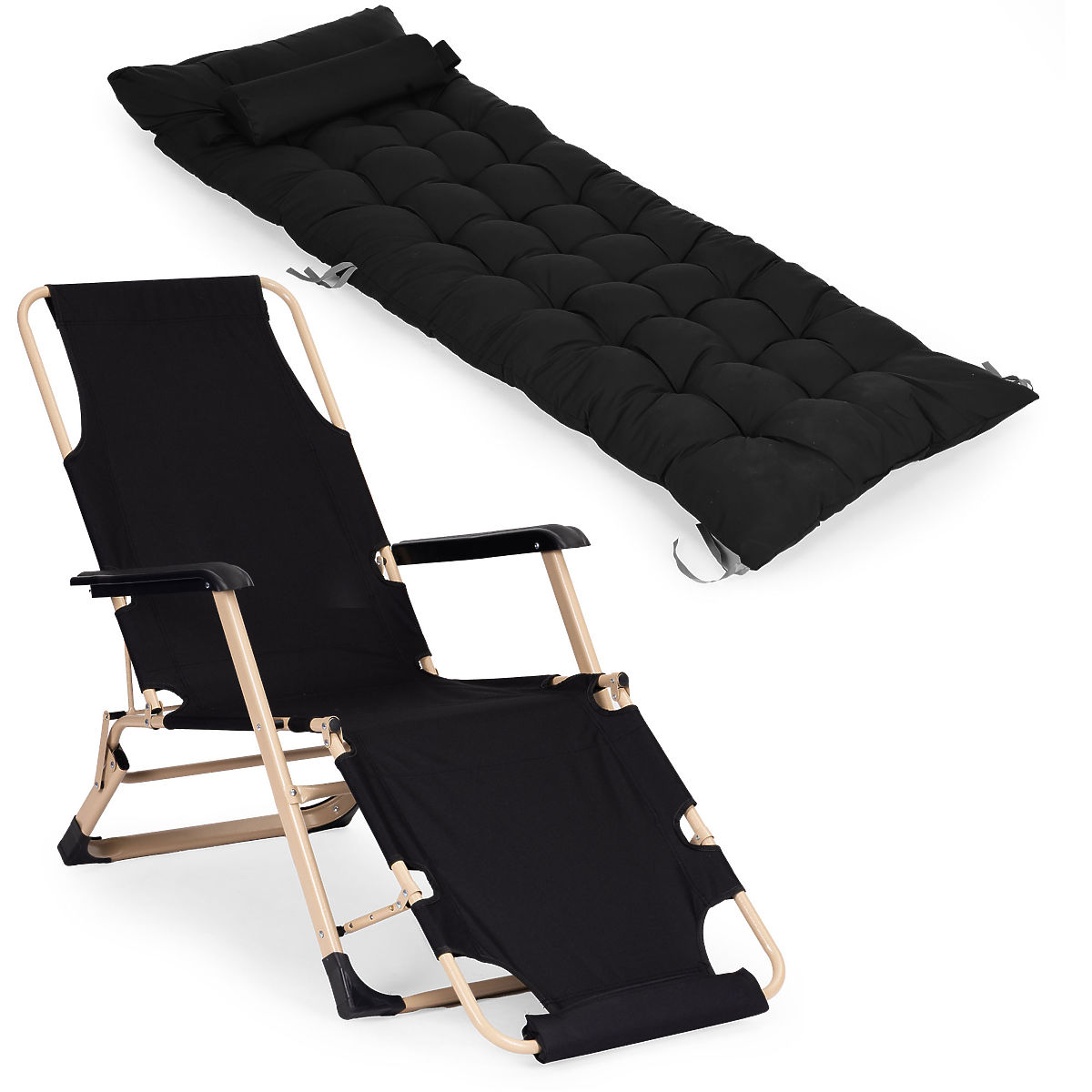 Lukahome.pl » Meble ogrodowe / Leżaki ogrodowe / Ogrodowy leżak plażowy 2w1 z poduszką, regulowany podnóżek, czarny, złota rama MultiGarden