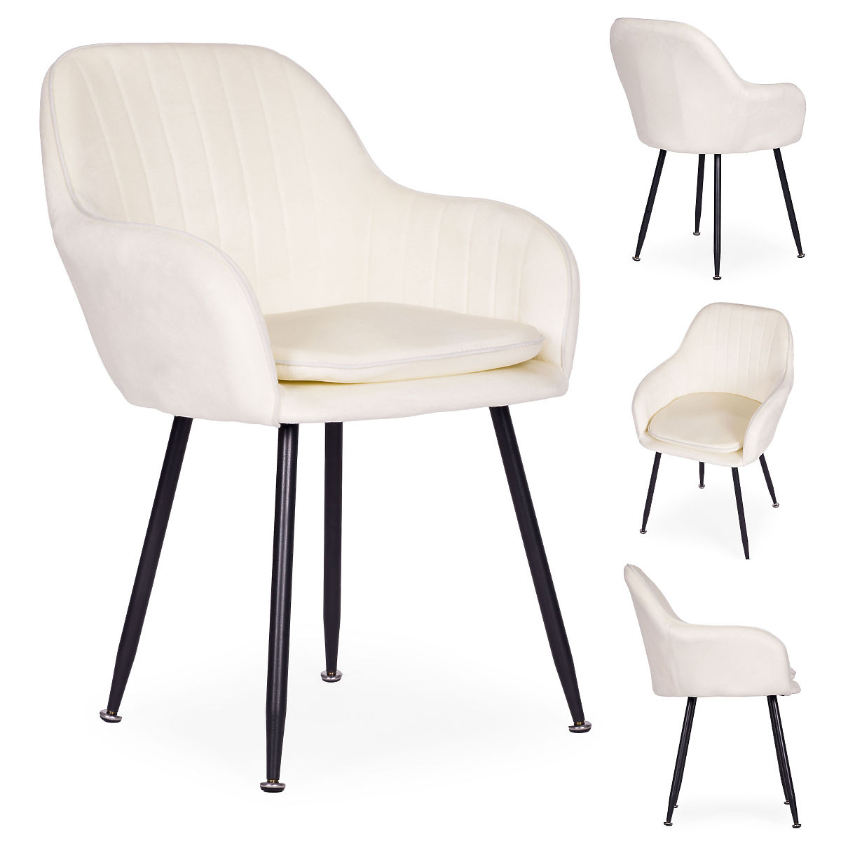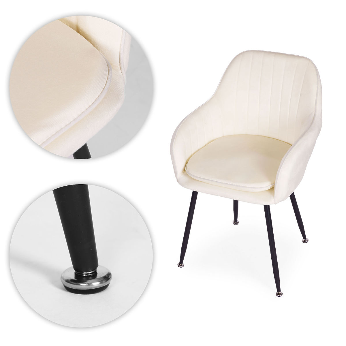 Nowoczesne kremowe krzesło z aksamitnym obiciem i stalowymi nogami. .. więcej