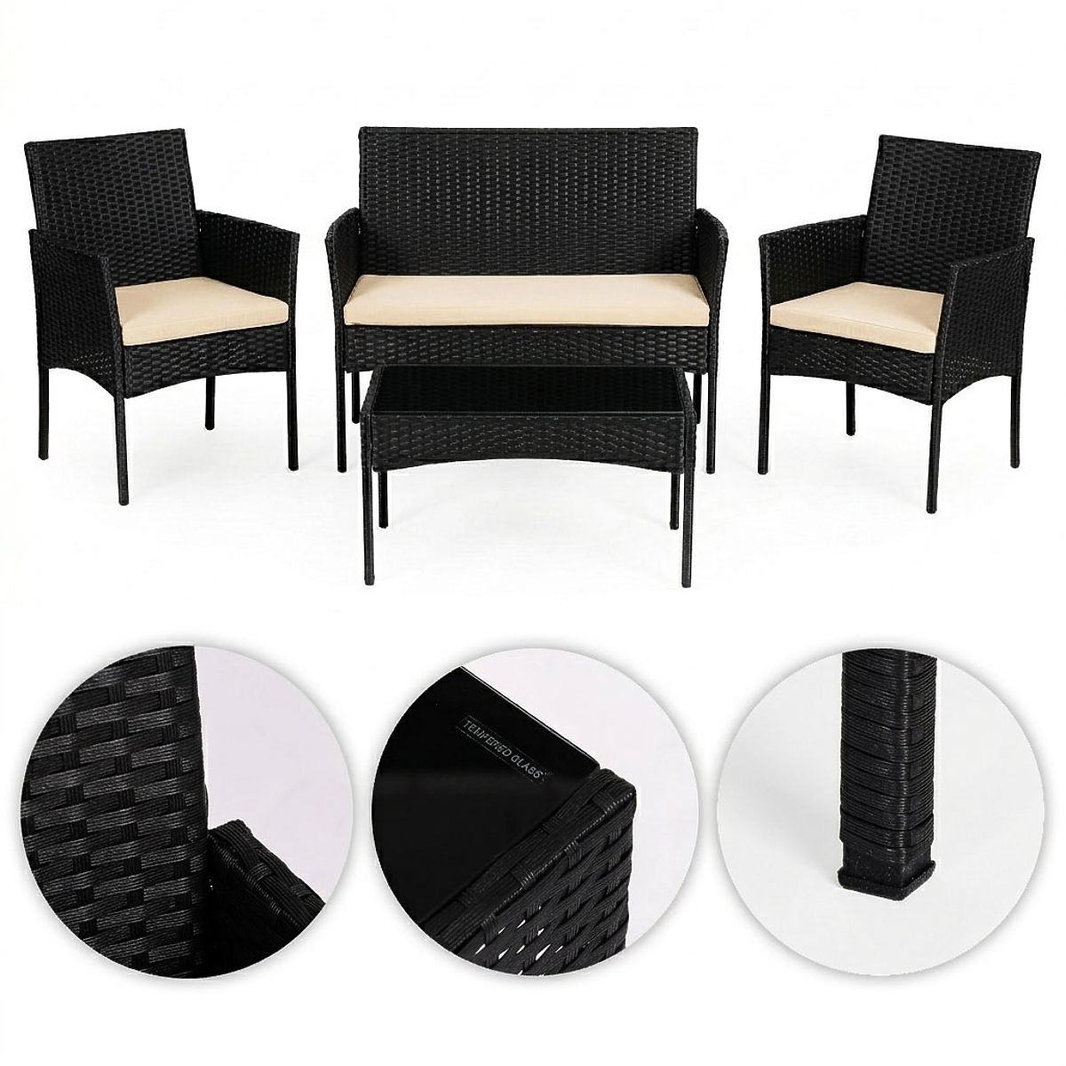 Lukahome.pl » Meble ogrodowe / Zestawy ogrodowe / Zestaw mebli ogrodowych z technorattanu ławka stół krzesła czarny MultiGarden