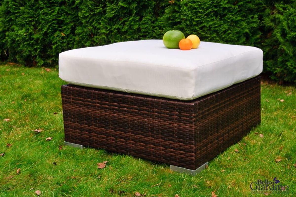 Wykonany z wysokiej jakości syntetycznego rattanu, ten PUF doskonale pasuje do każdego ogrodu, na taras lub balkon. Nowoczesny design i elegancja. Materiał, z którego wykonano PUF, doskonale znosi zmienne warunki atmosferyczne - jest odporny na deszcz, mróz i promieniowanie UV. Miękka poduszka zwiększa komfort wypoczynku. PUF prezentuje się świetnie jako samodzielny mebel, może być także używany do rozszerzenia wielomodułowych zestawów ogrodowych Bello Giardino. Kolor pufa: ciemnobrązowy, niejednolity Plecionka: technorattan 7-8mm x 1,2mm, gładka struktura Konstrukcja: aluminiowa 1 x puf: długość: 70 cm szerokość: 70 cm wysokość: 30 cm Wysokość siedziska: 30 cm + 12 cm poduszka. Puf jest wysyłany w 1 kartonie o wymiarach 72x72x42 cm, waga 10 kg Możliwość uszycia poduszki na indywidualne zamówienie: https://www.bg-meble.pl/pl/p/Usluga-Krawiecka-Poduszki-Na-Zamowienie-/742 Możliwość uszycia poszewki na poduszkę na indywidualne zamówienie: https://www.bg-meble.pl/pl/p/Usluga-Krawiecka-Poszewki-Na-Zamowienie/743 Kolor pufa: ciemnobrązowy, niejednolity Plecionka: technorattan 7-8mm x 1,2mm, gładka struktura Konstrukcja: aluminiowa 1 x puf: długość: 70 cm szerokość: 70 cm wysokość: 30 cm Wysokość siedziska: 30 cm + 12 cm poduszka. Aby mebel zachował swój wygląd jak najdłużej, zalecamy zakup pokrowca ochronnego. Pokrowiec w ciemnoszarym kolorze jest jednoczęściowy i ma na dole sznurek ściągający przeprowadzony przez metalowe oczka. Wszystkie pokrowce są szyte na zamówienie, a czas realizacji to około 14 dni roboczych.