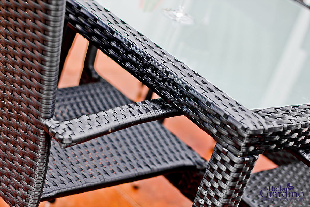Meble ogrodowe AVVICENTE to ucieleśnienie elegancji i funkcjonalności, zaprojektowane dla tych, którzy pragną wprowadzić do swojego ogrodu lub na taras odrobinę luksusu, nie rezygnując z praktyczności. Dzięki lekkiej konstrukcji stołu, ten zestaw umożliwia łatwe przestawianie, co pozwala szybko zmieniać aranżację przestrzeni zewnętrznej w zależności od aktualnych potrzeb czy okazji. Wykonane z wysokiej jakości syntetycznego rattanu, meble ogrodowe AVVICENTE nie wymagają skomplikowanej konserwacji i jednocześnie są odporne na niekorzystne wpływy deszczu, intensywnego nasłonecznienia i mrozu. Piękny wygląd mebli AVVICENTE, połączony z wygodnymi krzesłami i trwałością materiału, tworzy idealne warunki do relaksu na świeżym powietrzu i zapewnia komfortowe środowisko na długie letnie wieczory. To doskonały wybór dla tych, którzy szukają mebli ogrodowych z technoratanu, które będą służyć przez wiele lat, zachowując estetykę i funkcjonalność. Kolor zestawu AVVICENTE: czarny – jednolita, delikatnie prążkowana struktura (stół i krzesła nieznacznie różnią się strukturą plecionki – patrz zdjęcia w galerii produktu)