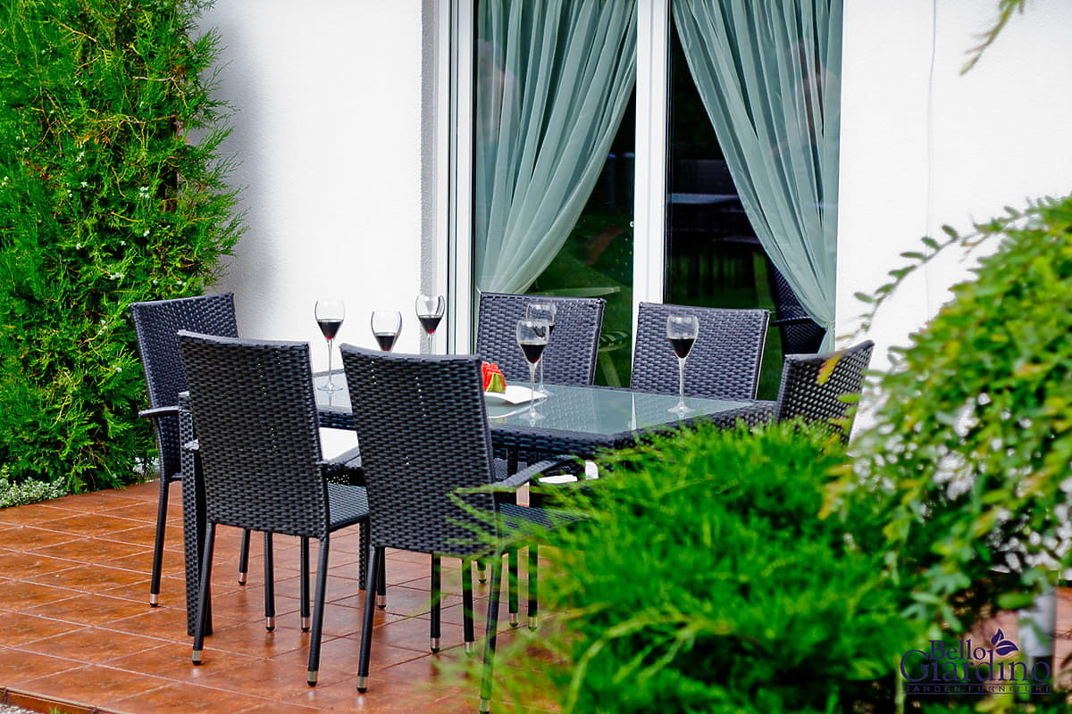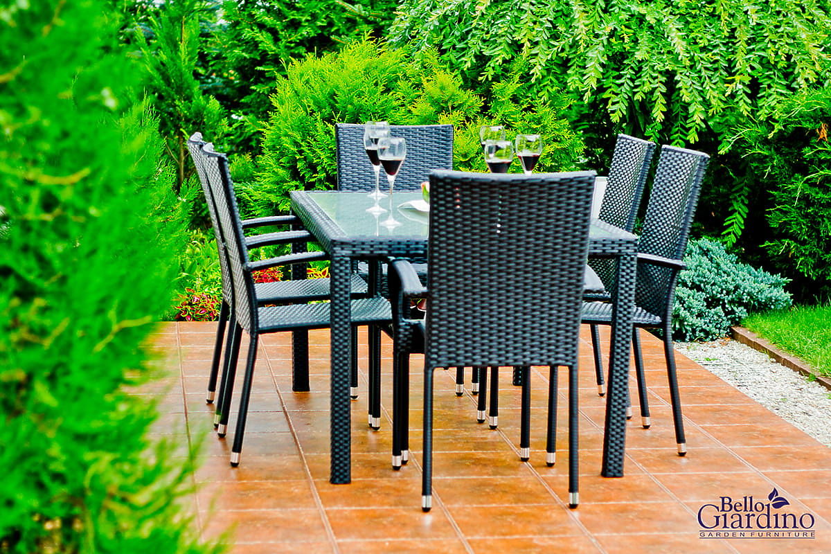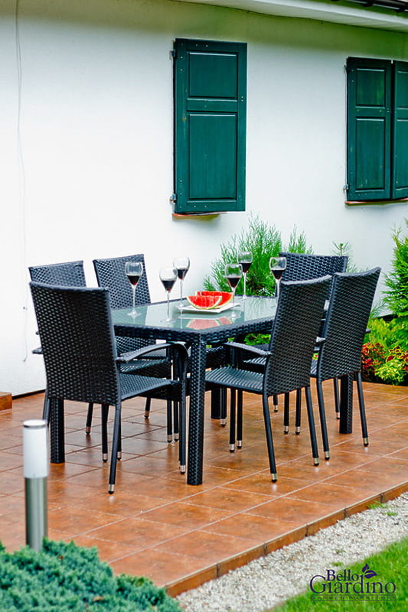 Lukahome.pl » Meble ogrodowe / Zestawy ogrodowe / Zestaw mebli jadalnianych z technoratanu (stół 150×90 cm + 6 × krzesła) AVVICENTE, czarny