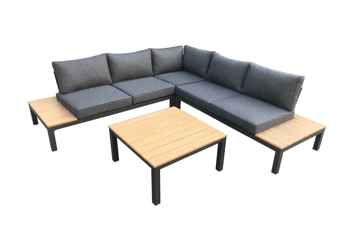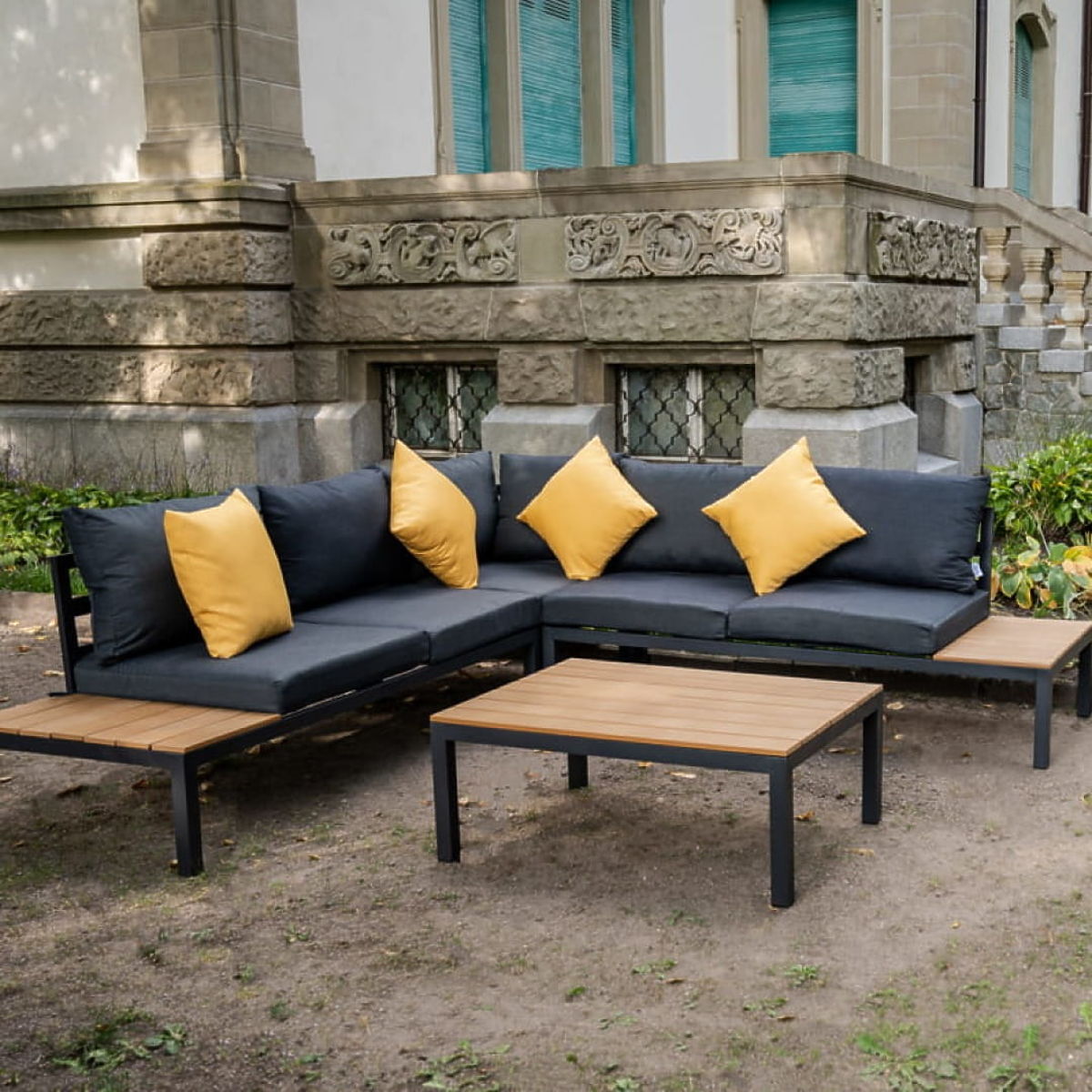 Duży aluminiowy narożny zestaw ze stolikiem MASSIMO czarny