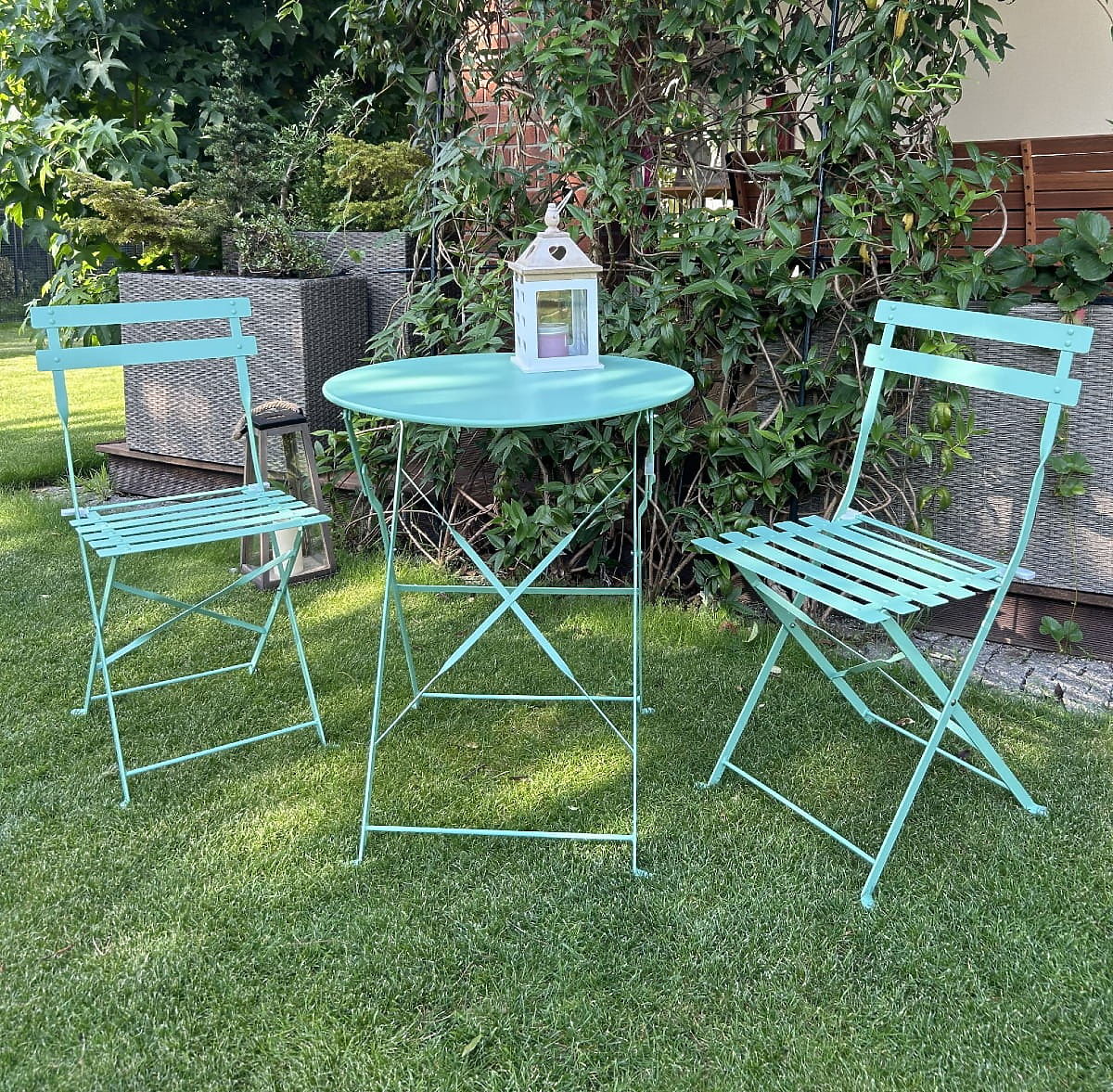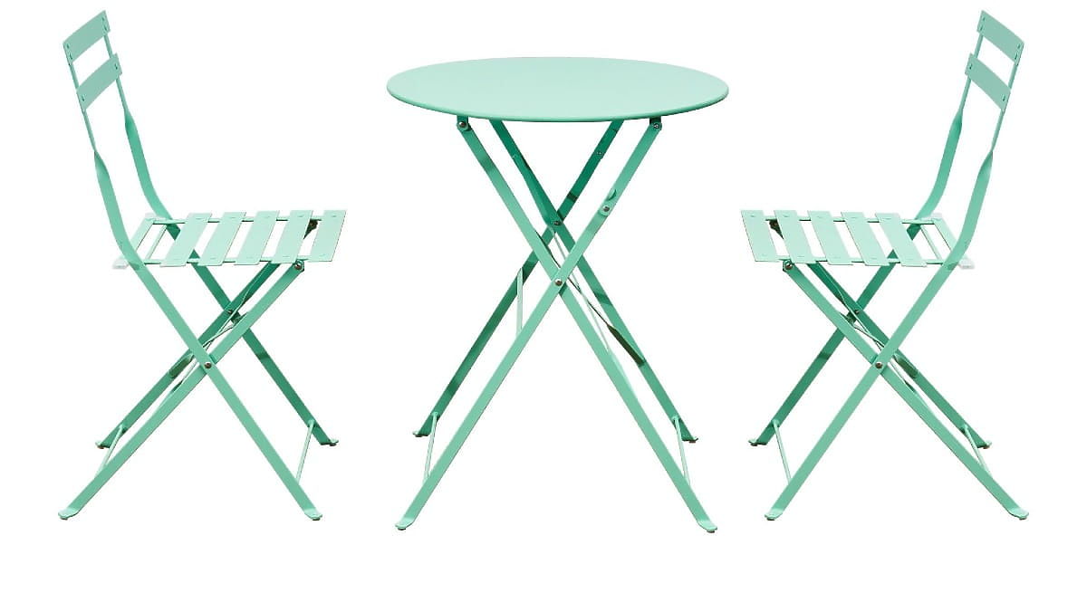 Stalowe Meble Balkonowe (2 x składane krzesła + stół) SEMPLICI Miętowy