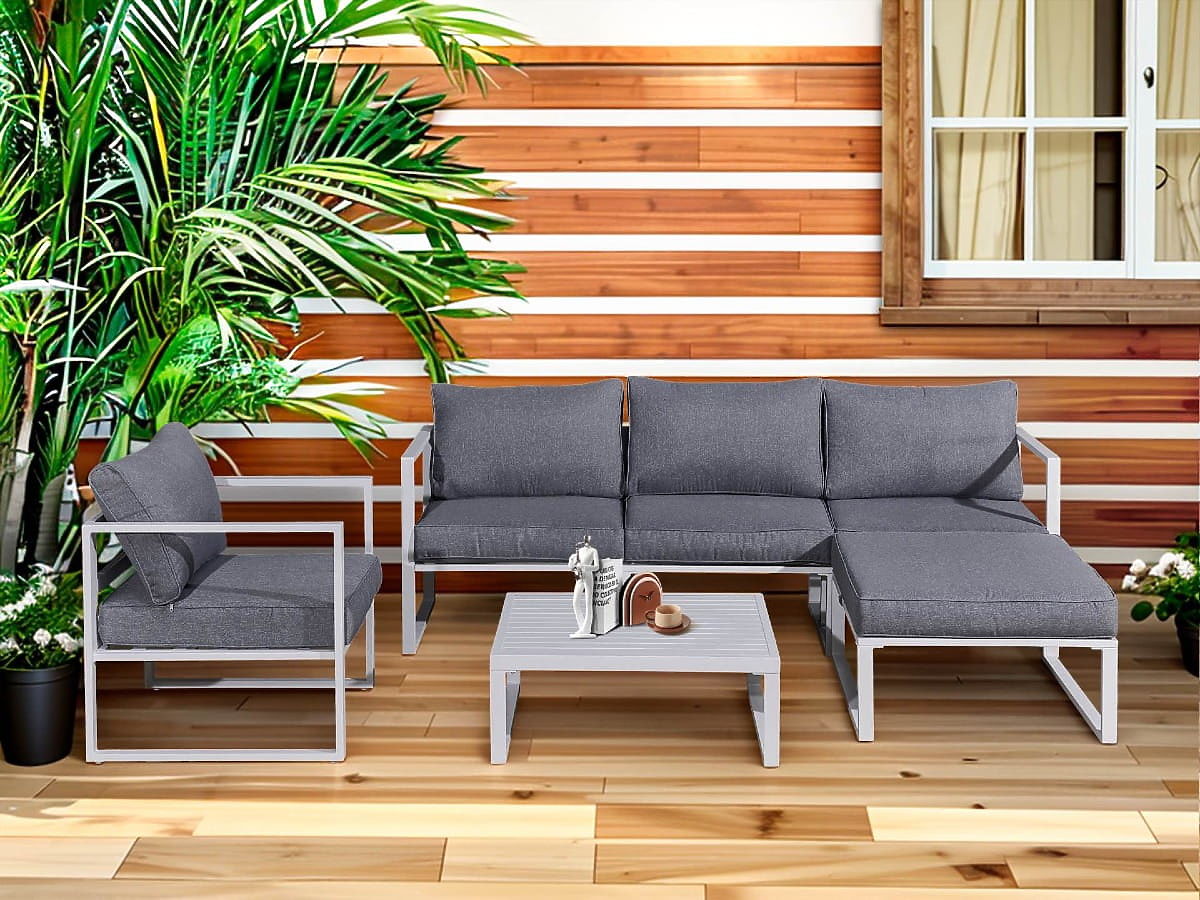 Aluminiowy zestaw mebli na taras (Sofa 204 cm, fotel, pufa + stolik) MOSTRARE Biały