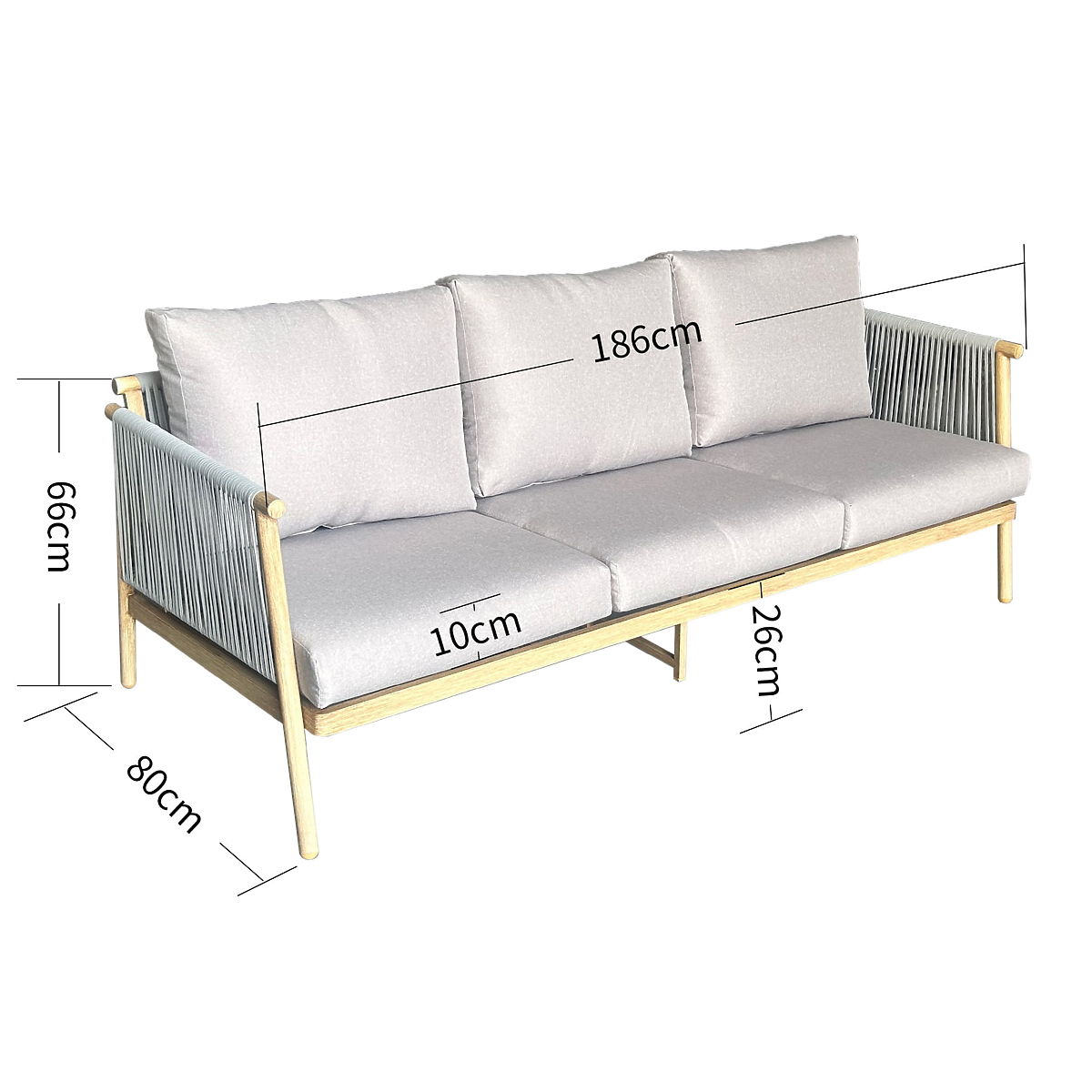 Aluminiowa sofa ogrodowa BLANDO - duża 3-osobowa, 186 cm