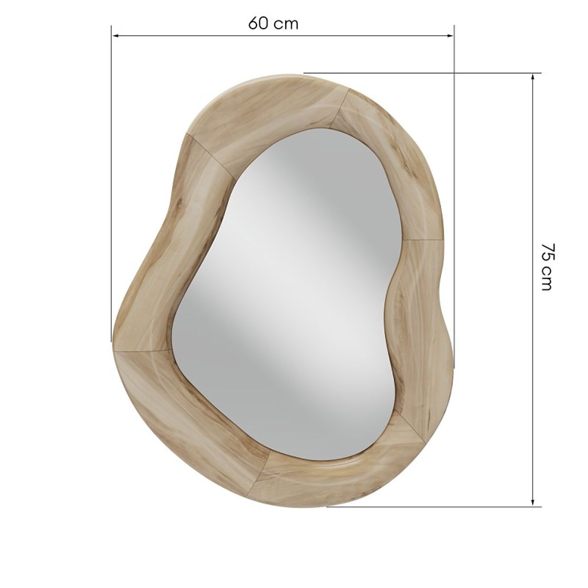 Lukahome.pl » Dekoracja / Lustra / Wiszące lustro w drewnianej ramie Lia 75x60 cm, organiczny kształt, nieregularny kształt, naturalne