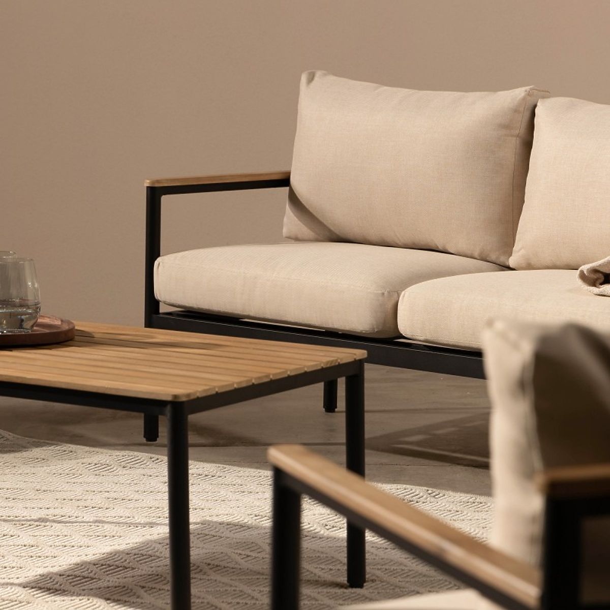 Lukahome.pl » Meble ogrodowe / Zestawy ogrodowe / Zestaw mebli ogrodowych Porticello, aluminiowy, drewno akacjowe FSC, wygląd teakowy, beżowy/czarny