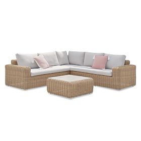 Narożny zestaw Sandy z technorattanu do ogrodu z beżowymi poduszkami. .. więcej