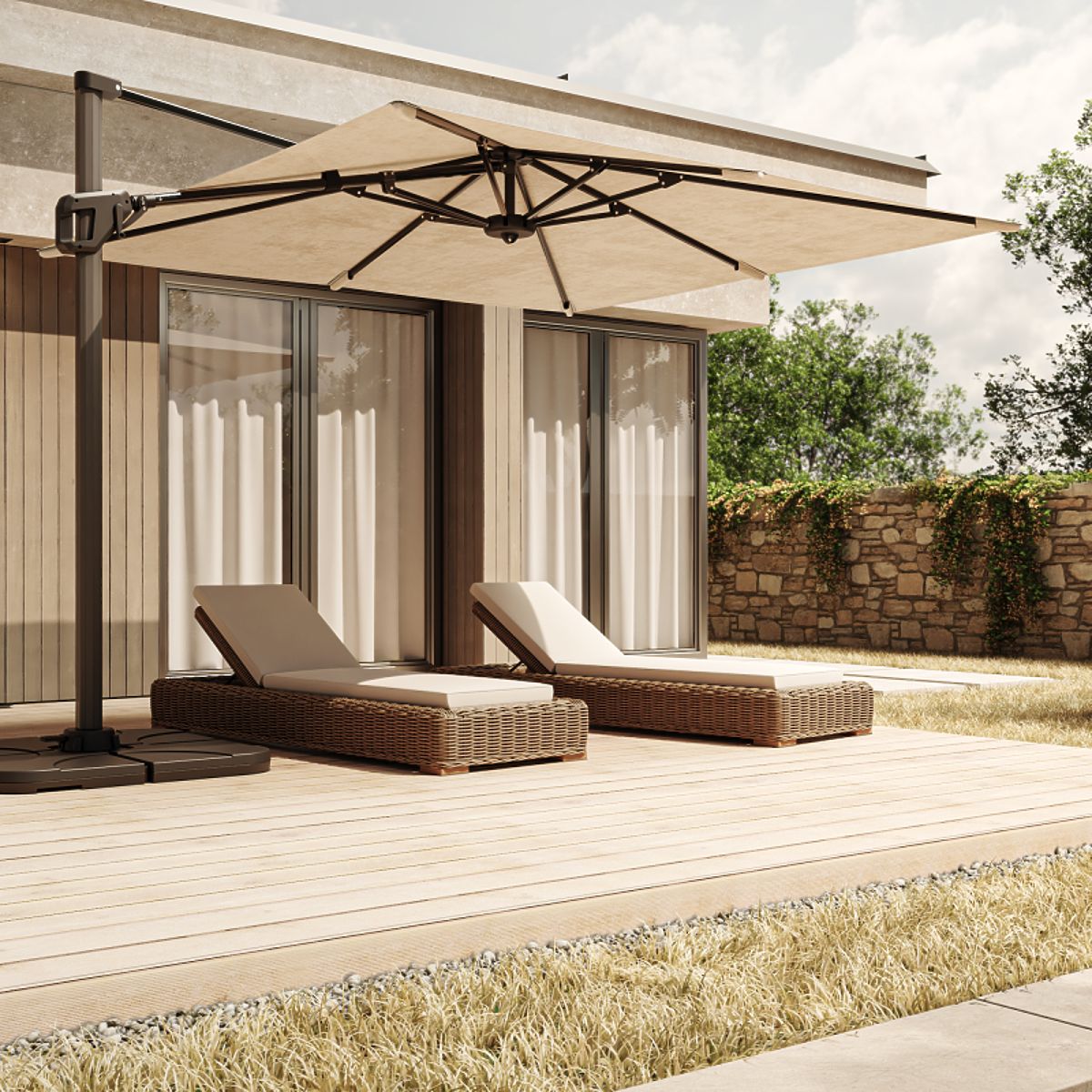 Parasol Shade zapewnia pełną kontrolę nad relaksem – obrót o 360° i regulacja kąta nachylenia gwarantują cień dokładnie tam, gdzie go potrzebujesz. Solidna aluminiowa konstrukcja i wytrzymałe poszycie zapewniają komfort i niezawodność przez wiele sezonów.
