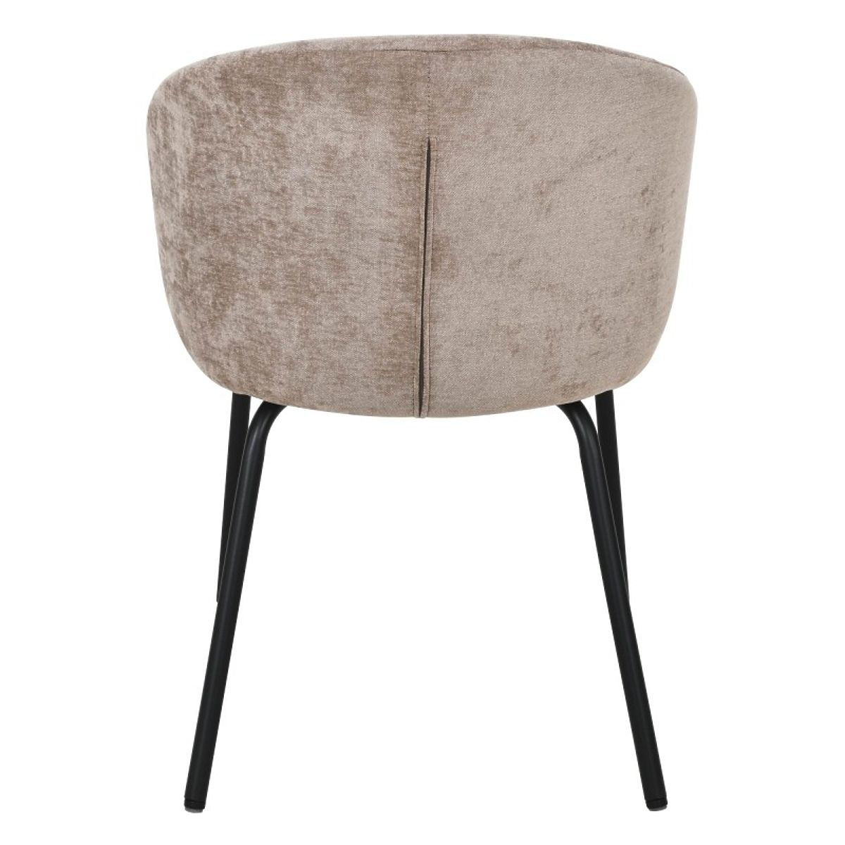 Krzesło Larisa łączy nowoczesną elegancję z komfortem. Jego miękkie siedzisko i zaokrąglone oparcie są pokryte przyjemną brązową tkaniną, która dodaje ciepła każdemu wnętrzu. Czarne, solidne nogi zapewniają wyraźny kontrast i stabilność, podkreślając jego stylowy charakter.