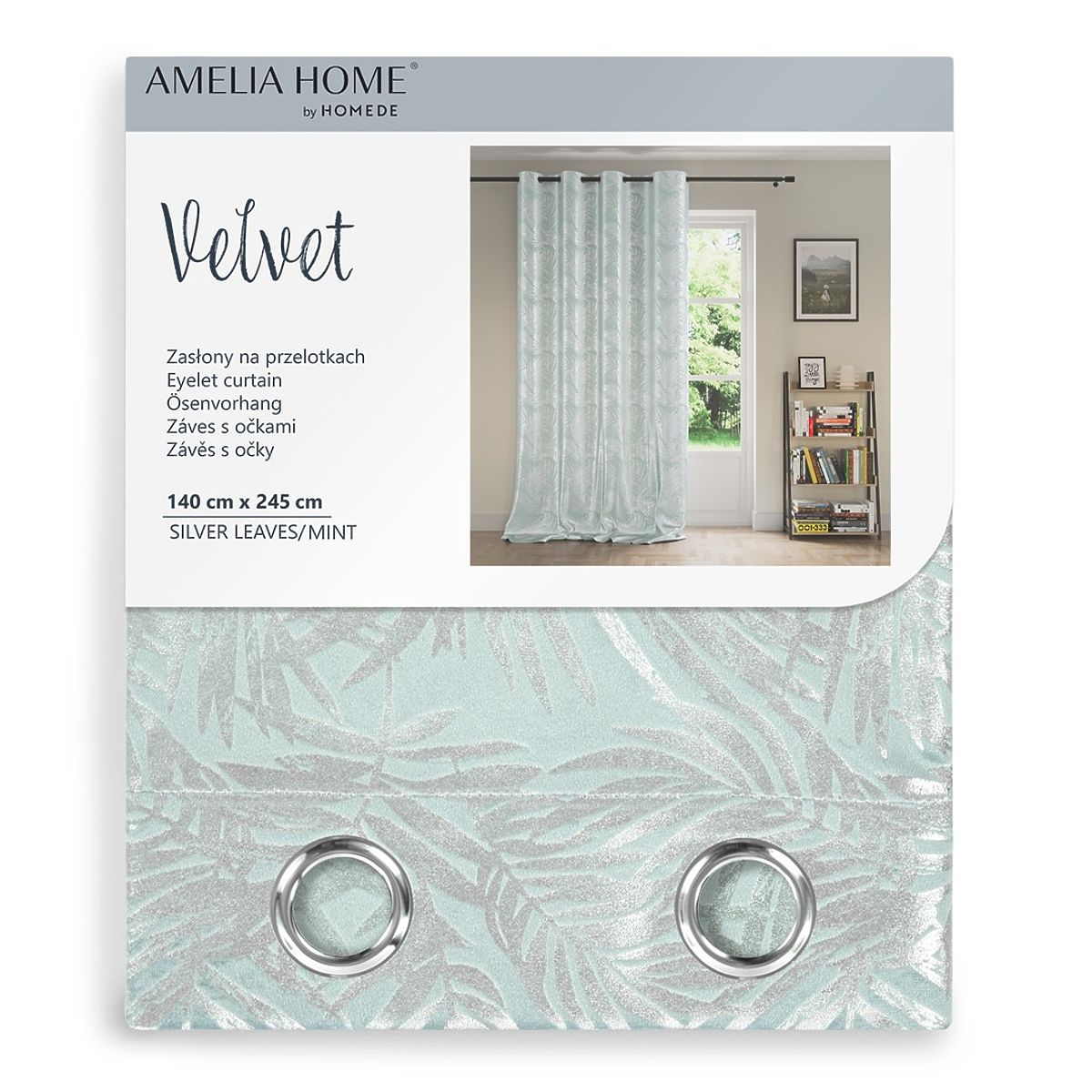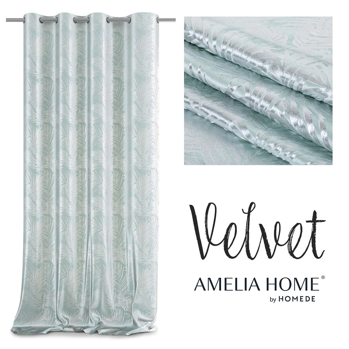 Lukahome.pl » Zasłony i kurtyny / Zasłony / Zasłona SILVERLEAVES kolor miętowy styl glamour srebrne przelotki aksamit 140x245 AmeliaHom